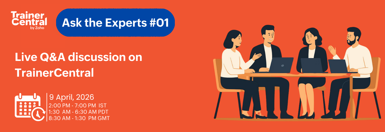 As this is our first session, we’ve kept the discussion topic open. You can ask anything related to TrainerCentral’s functionality, use cases, or feature requests. Our product experts will be available to address all of your questions.