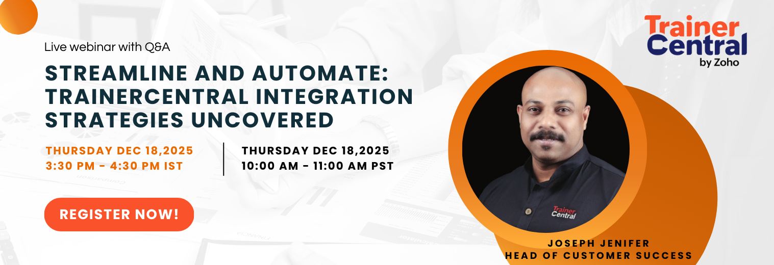 Join our free webinar Streamline and automate: TrainerCentral integration strategies uncovered.