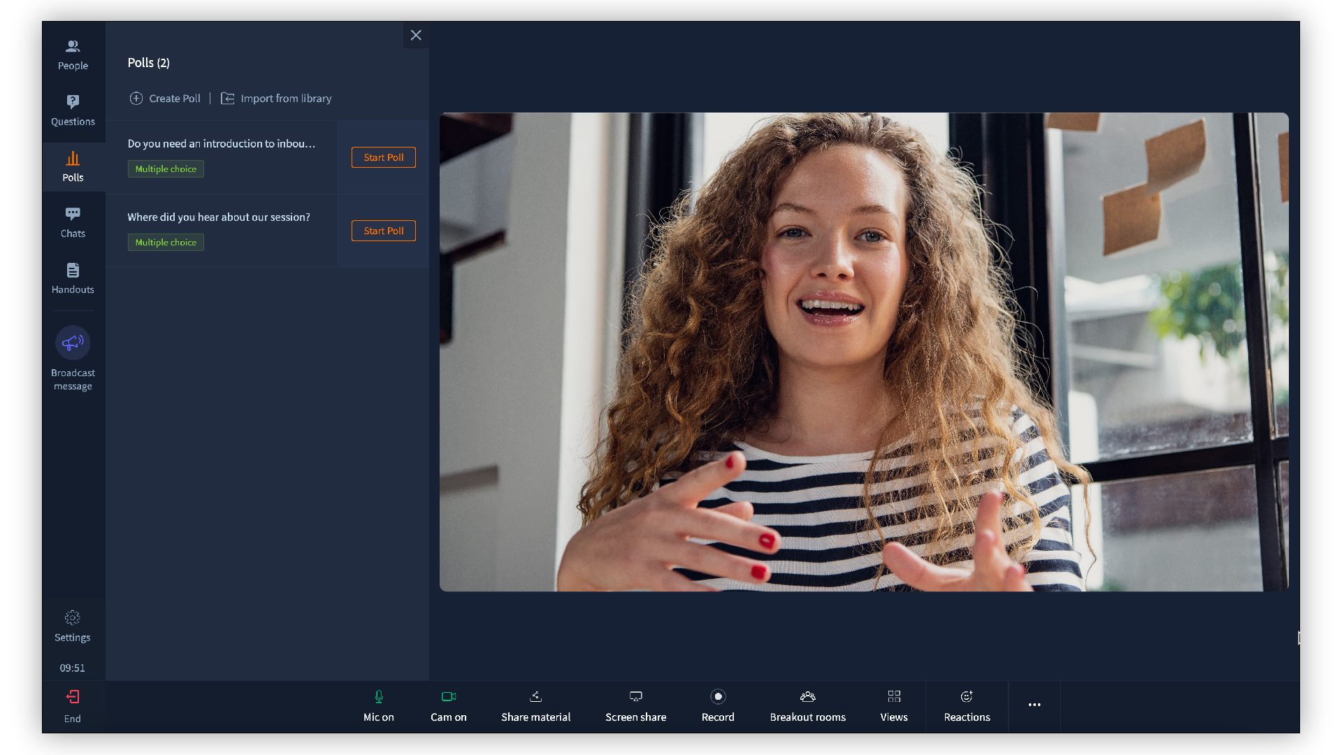 Here, we can see how hosting polls can help trainers like Audrey keep their audience engaged throughout their session.