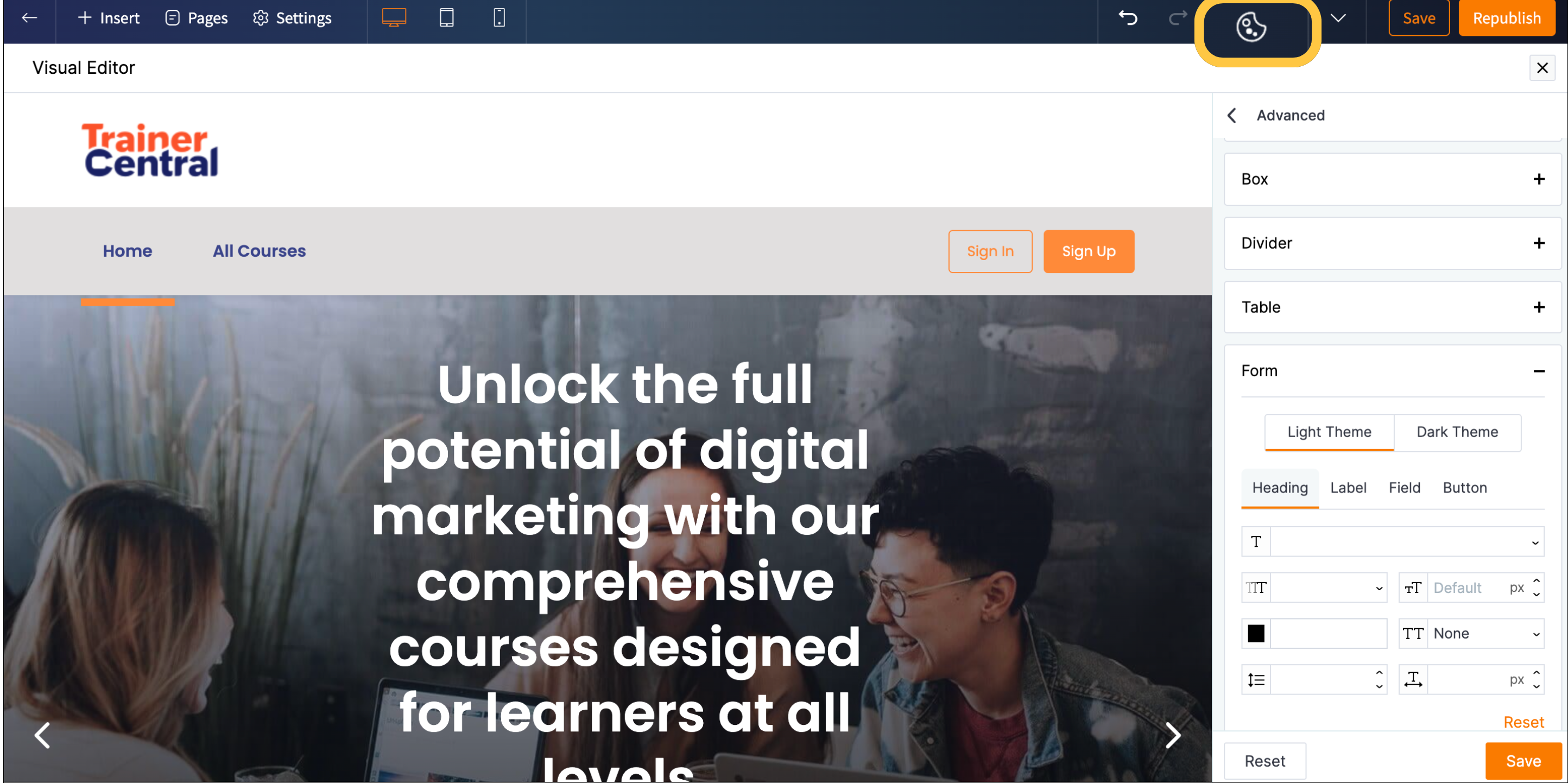 In line with this need, we’ve launched a new website builder that enhances your creativity and efficiency in building captivating websites. It offers a variety of functionalities, helping you launch and publish your courses more smoothly.