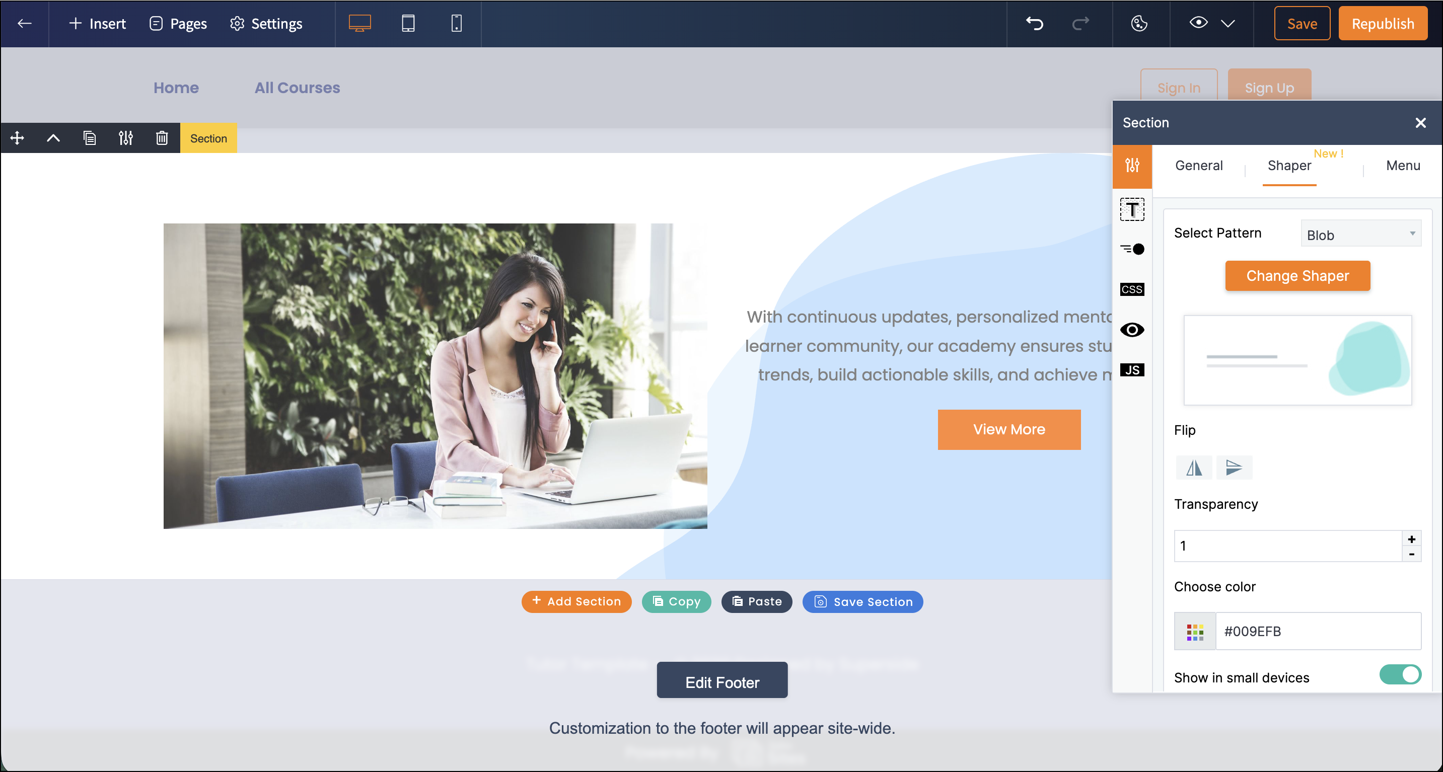 Shapers: Add more designs to your sections, such as geometric, blob, and floral, to offer a visual treat for your visitors.