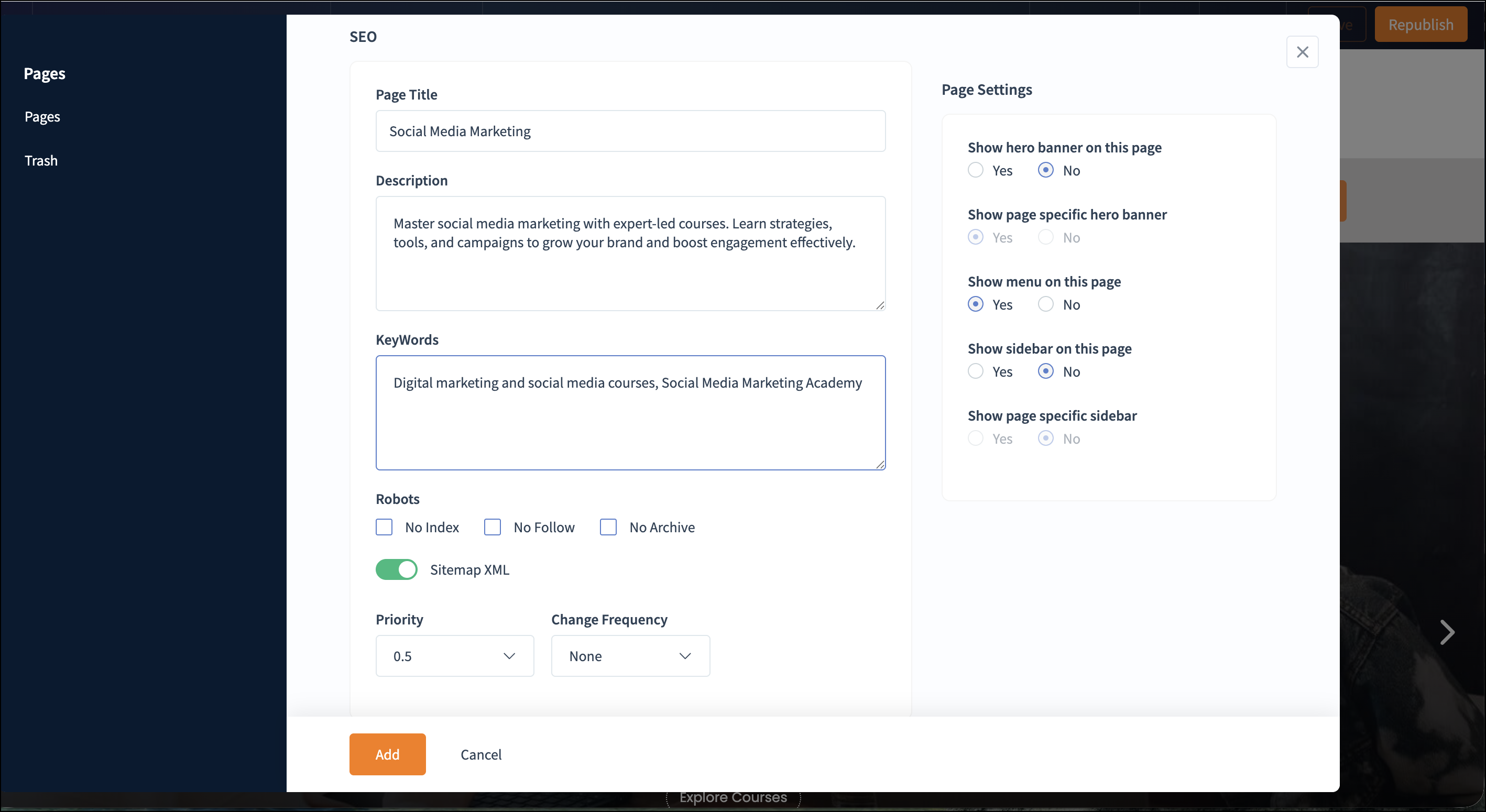 Built-in SEO: Enhance your website visibility by adding relevant a meta title, meta description, and keywords.