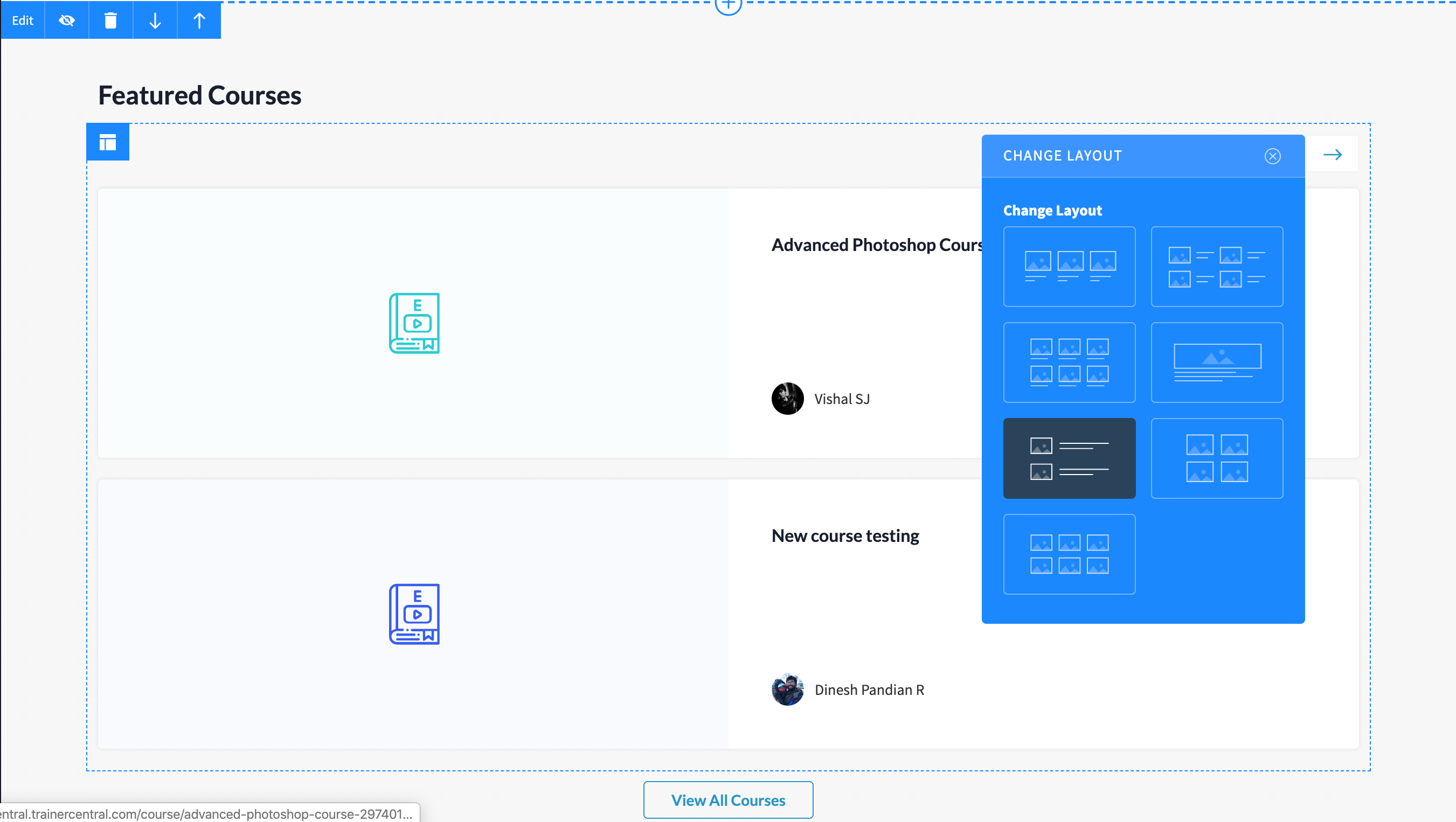 You can also add featured courses as a section to your webpage and customize the layout or the background color. Featured courses are your most valued or significant courses that either have been very well-received by your learners, rich in ad value, or by an expert in that subject matter. What qualifies a featured course is completely up to you and you can add them to your site anywhere you please.