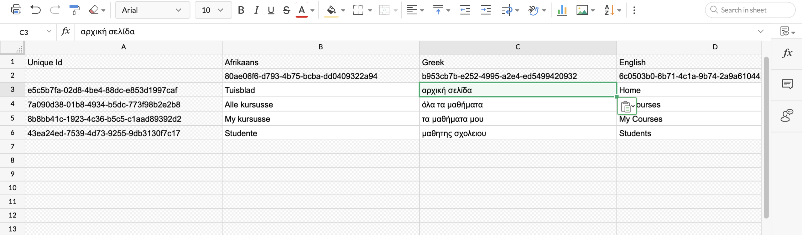 TrainerCentral allows you to add all your translated content in a single spreadsheet and upload it directly to the site for easy access. This way you can add and configure all your related translations in one sheet and have them directly implemented in your website.