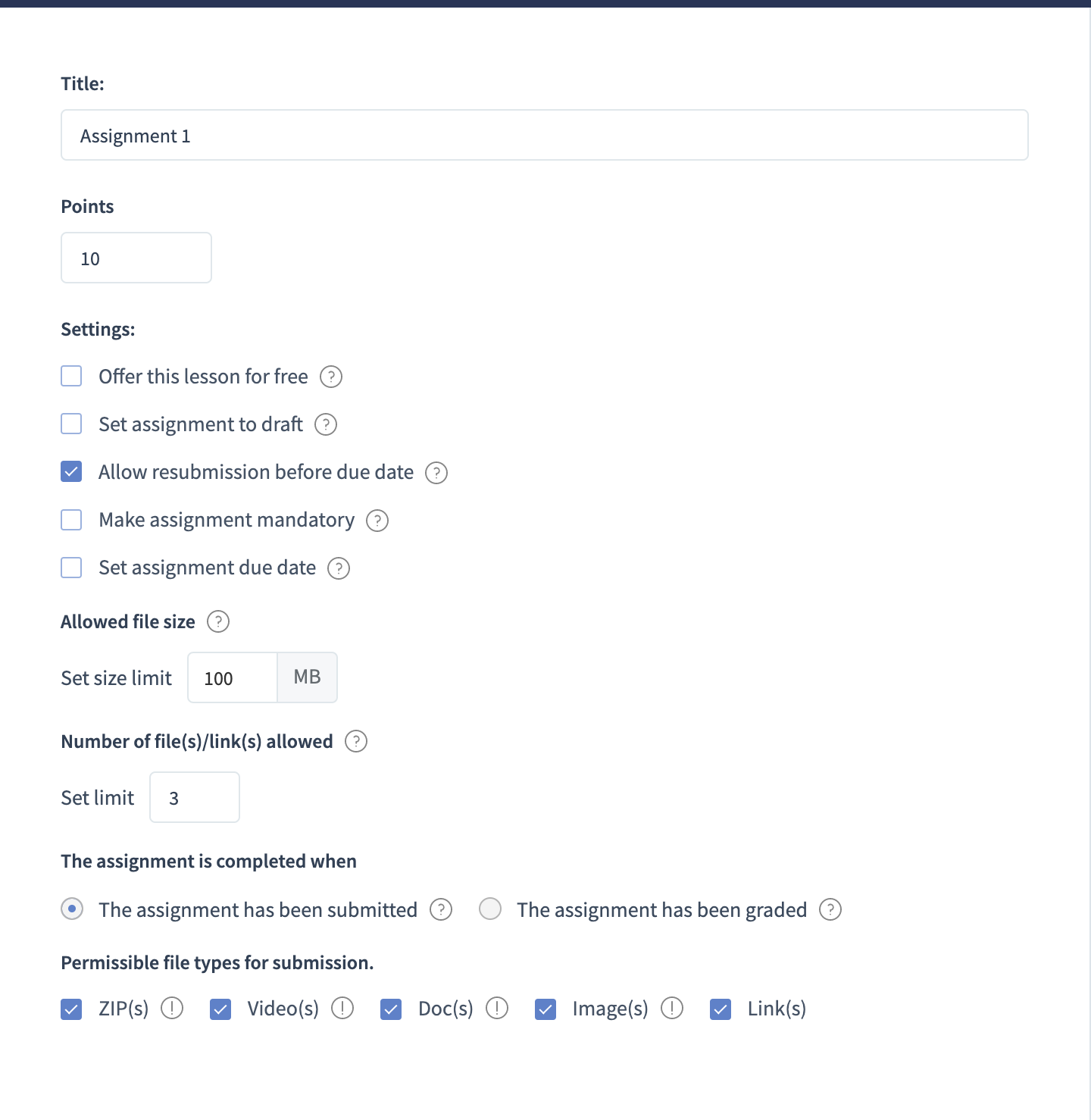 2. Enable assignment resubmission - You can allow assignment resubmissions offering your learners multiple chances to get the assignment right.