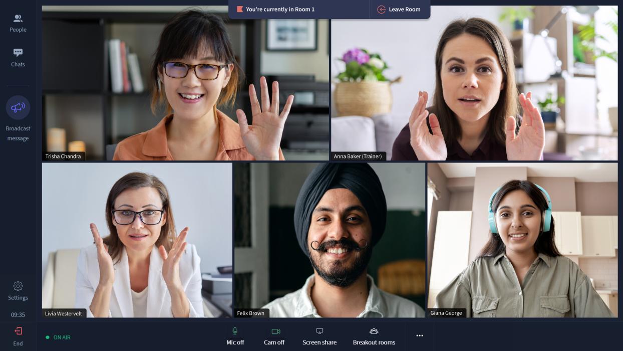 A breakout room can be used to split your audience into specific groups for team-building tasks, leaner-specific activities and even offer varying course content based on specific user needs.