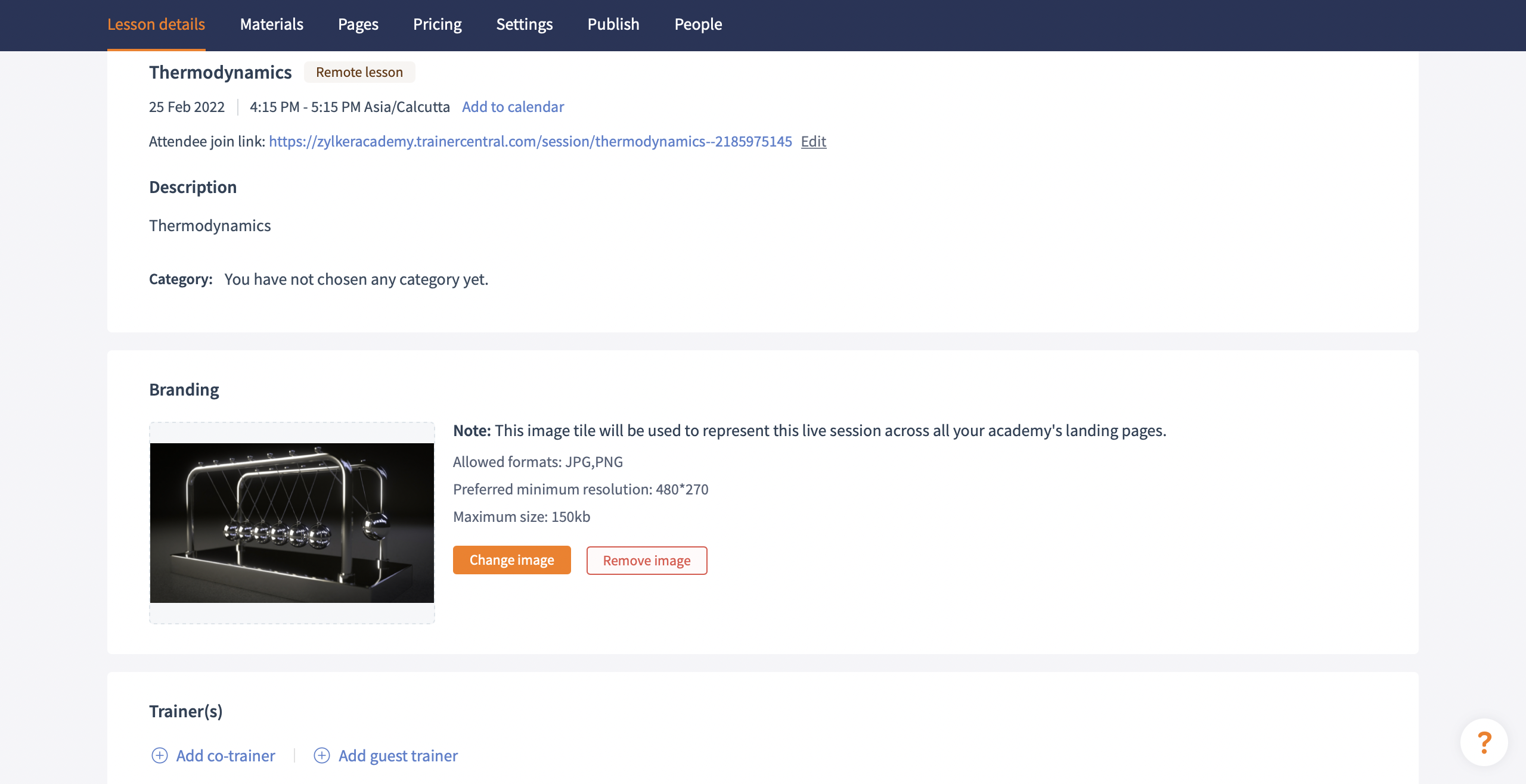 2. Under the Session Details Page, they can join the session as a co-trainer by clicking on the Join Session icon on the top right corner.