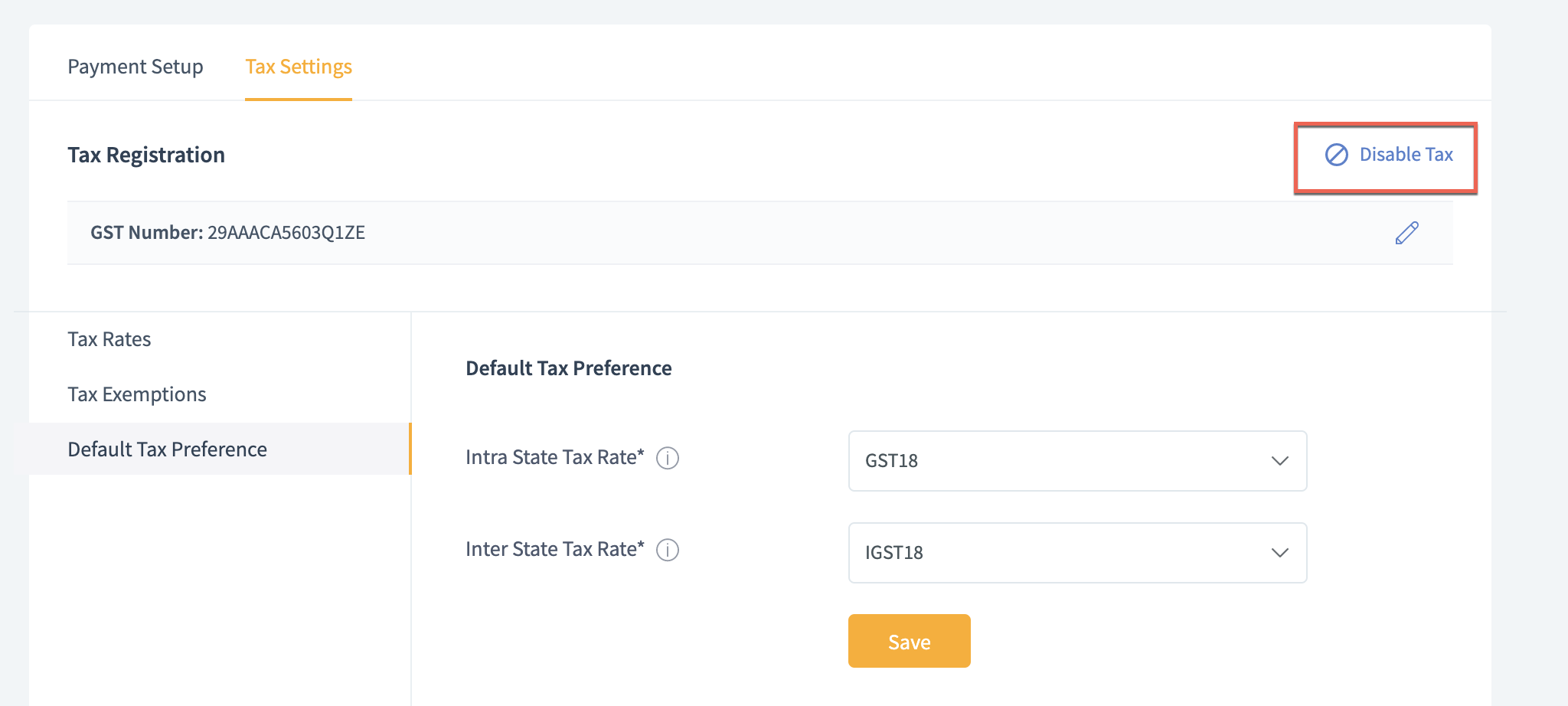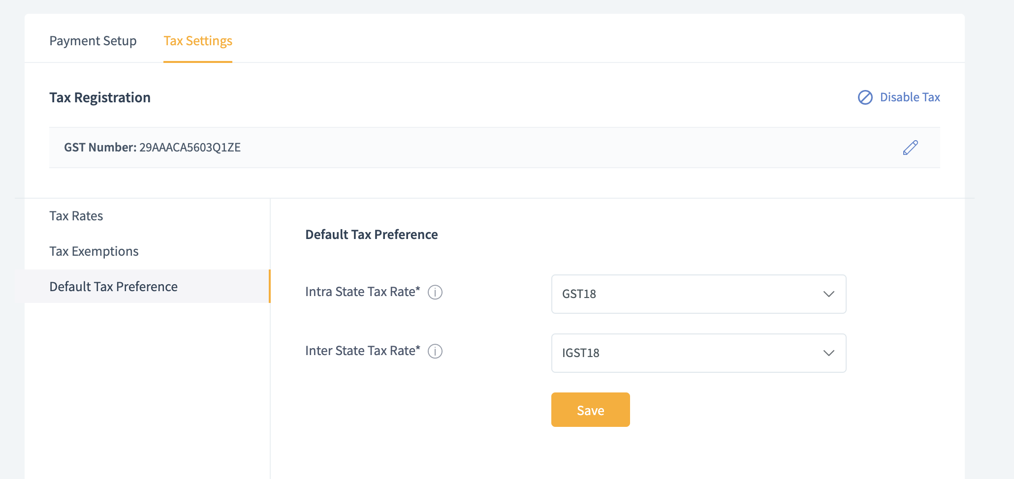3. You can choose your preferred default tax preference specifying your Interstate and Intrastate tax rates.