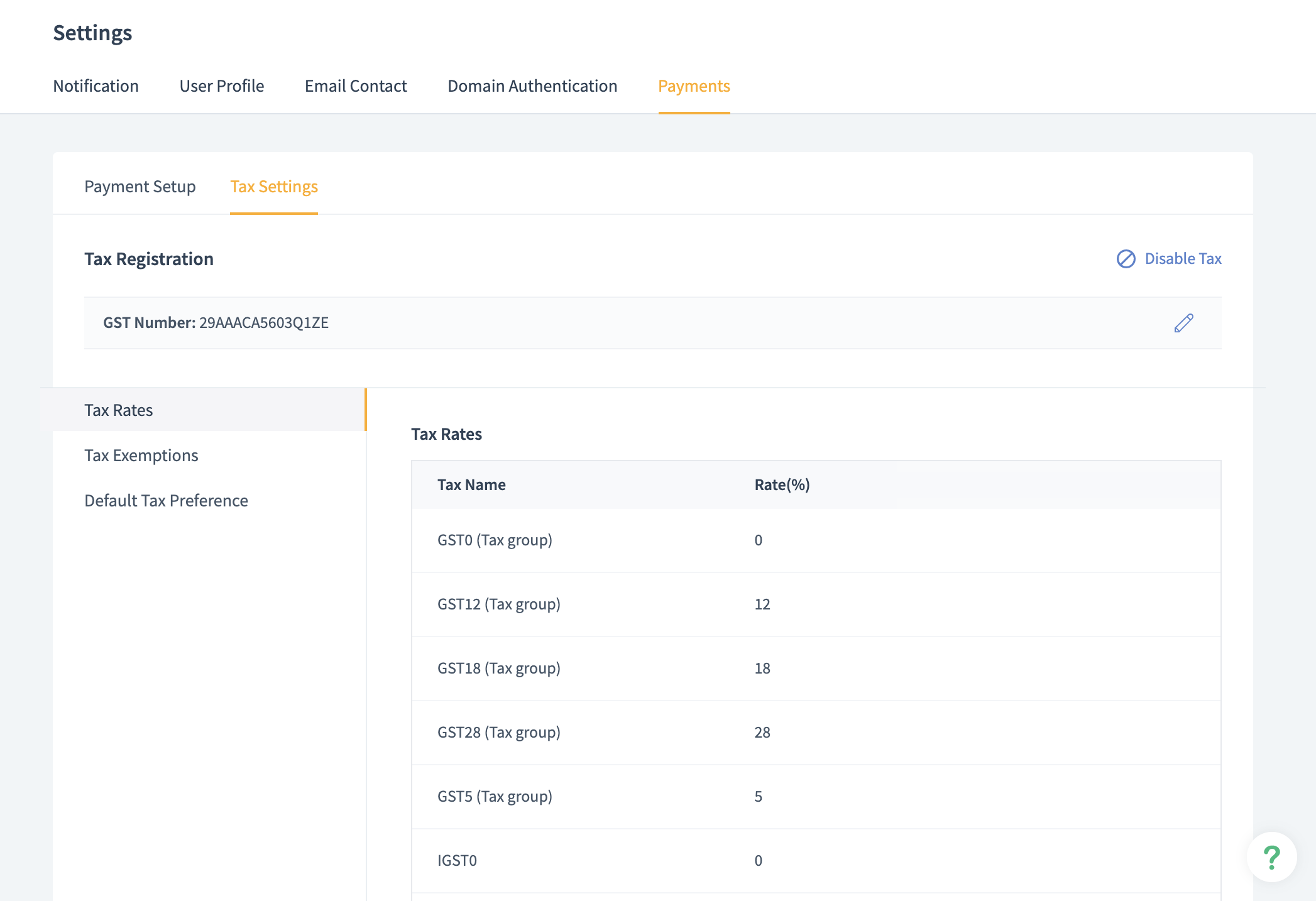 2. Enter the GST code of your business and your tax settings will automatically be configured and ready.