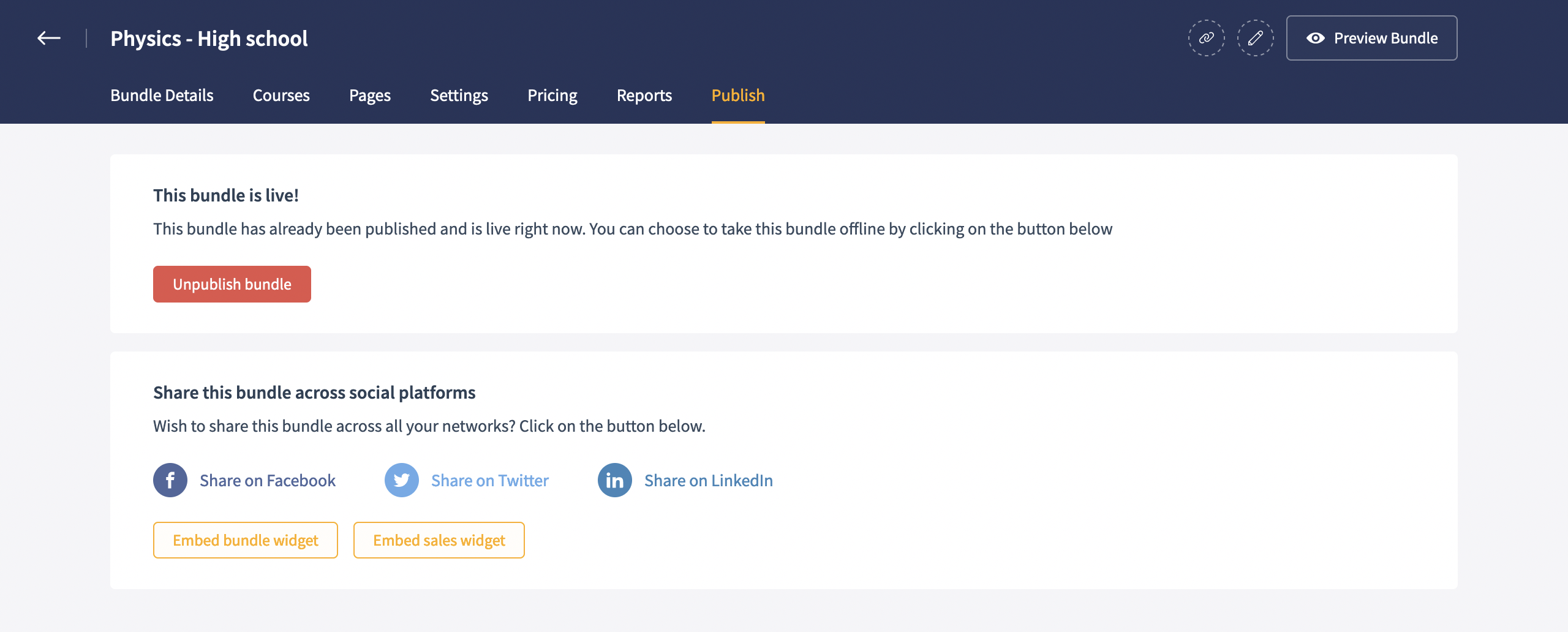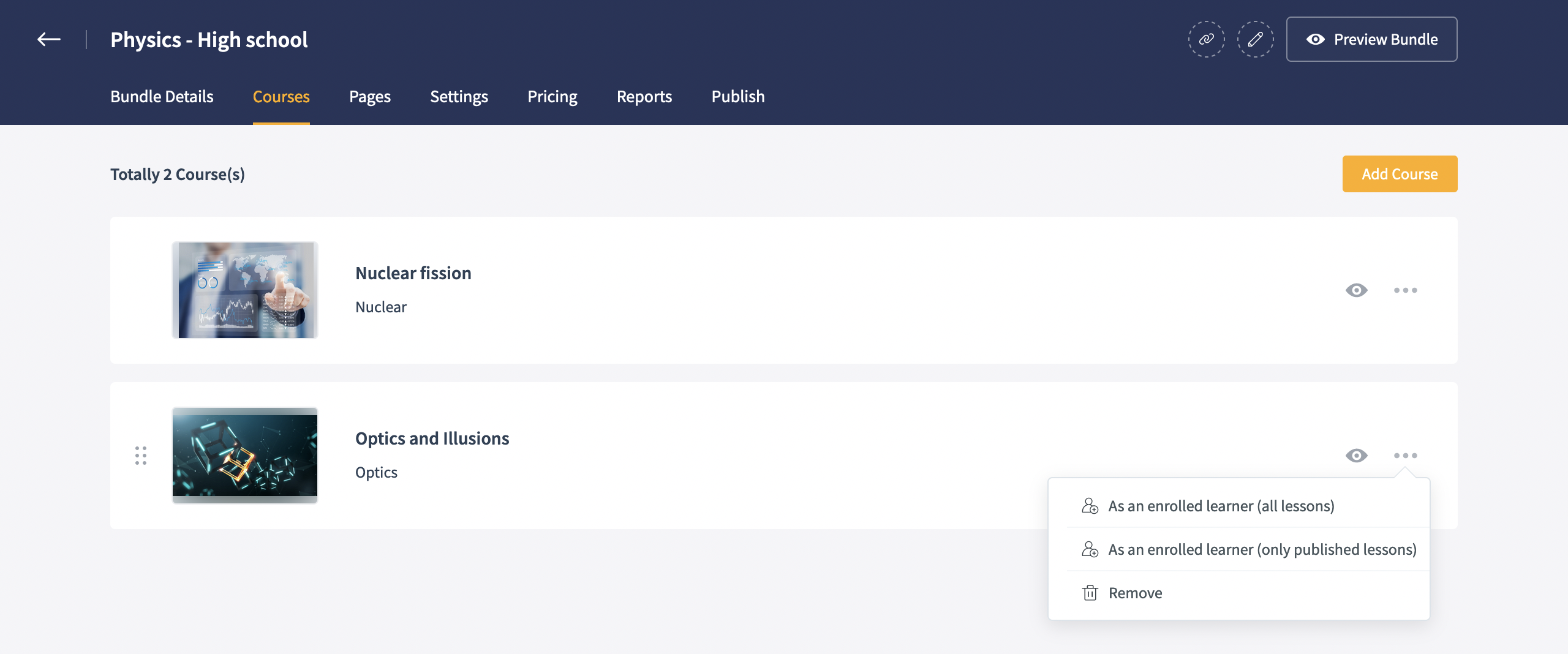 Here you can reorder the course order, preview the bundle and even a particular course from a bundle.