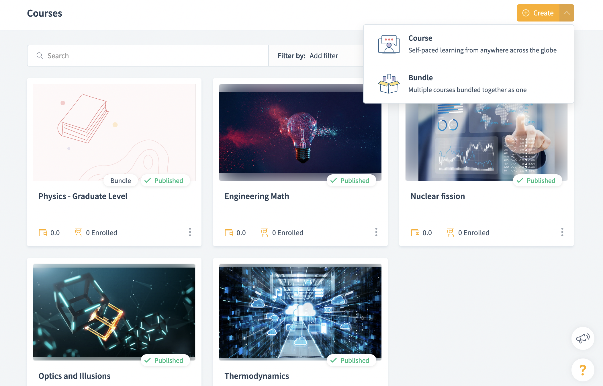 If you wish to sell multiple courses together or combine related courses under one common landing page and pricing to offer it as one to your learners, you can easily bundle related courses together and sell them as one.