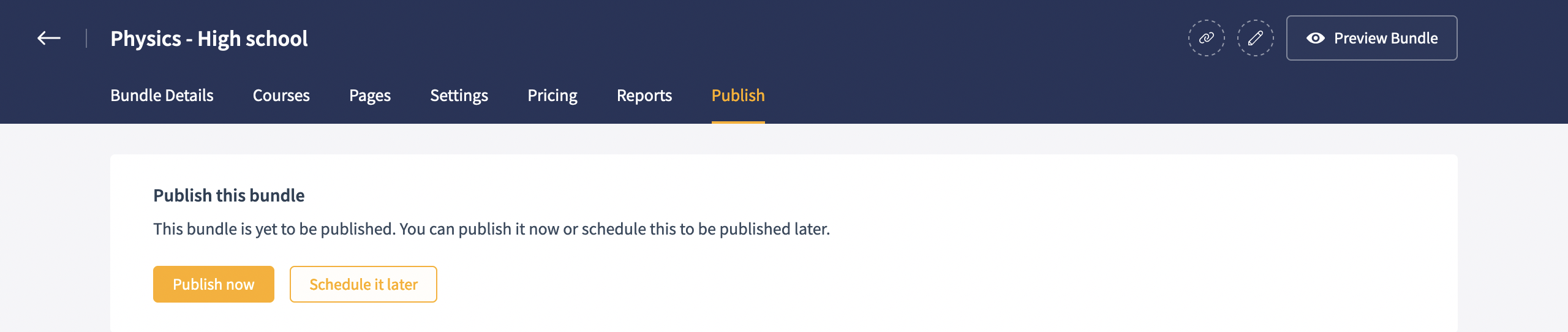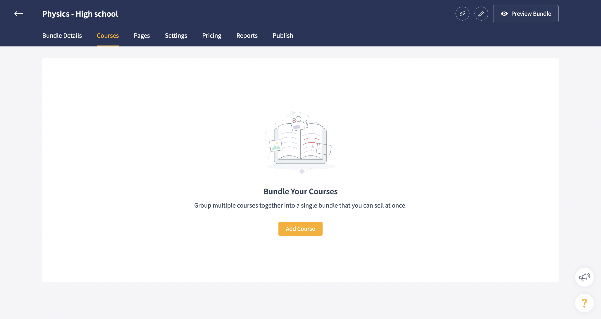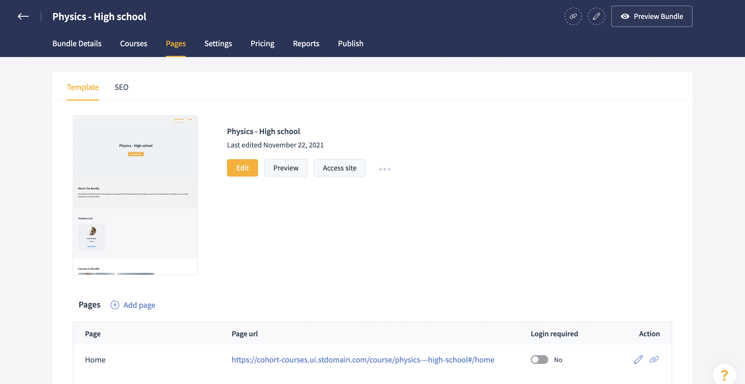 3. Once a bundle is created, you can configure the course bundle's site page, add courses, configure pricing, customize settings and much more.