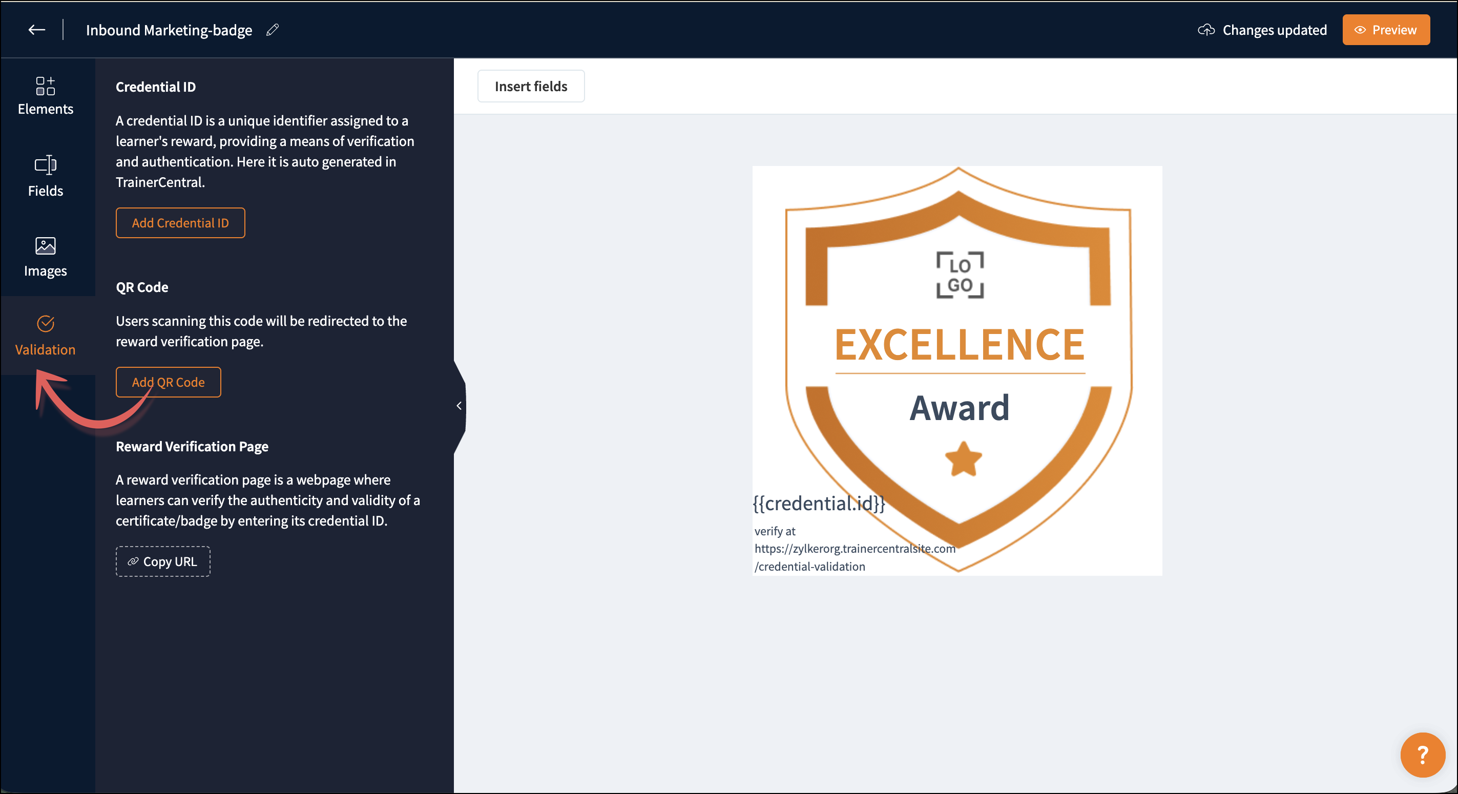 Add validation to badges to help others validate learners’ rewards. This validator redirects people to the reward verification page, where learners' credentials can be verified.