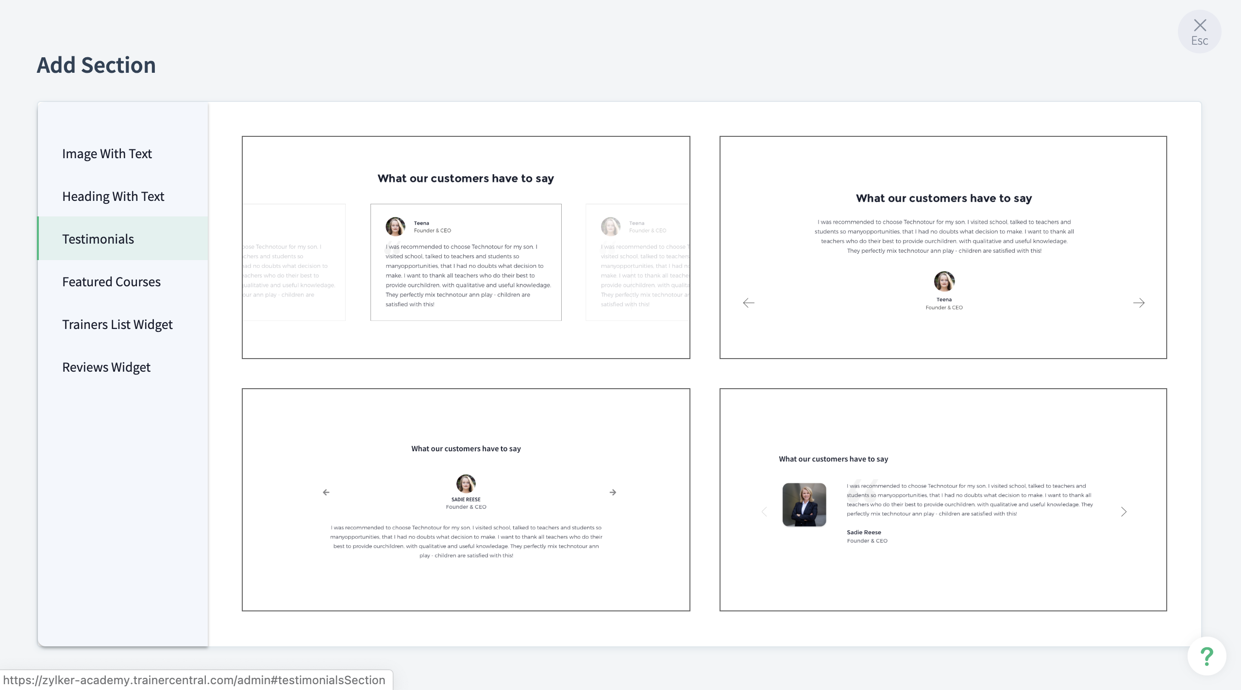 You can add positive testimonials about your academy that your learners have shared with you by adding them here.