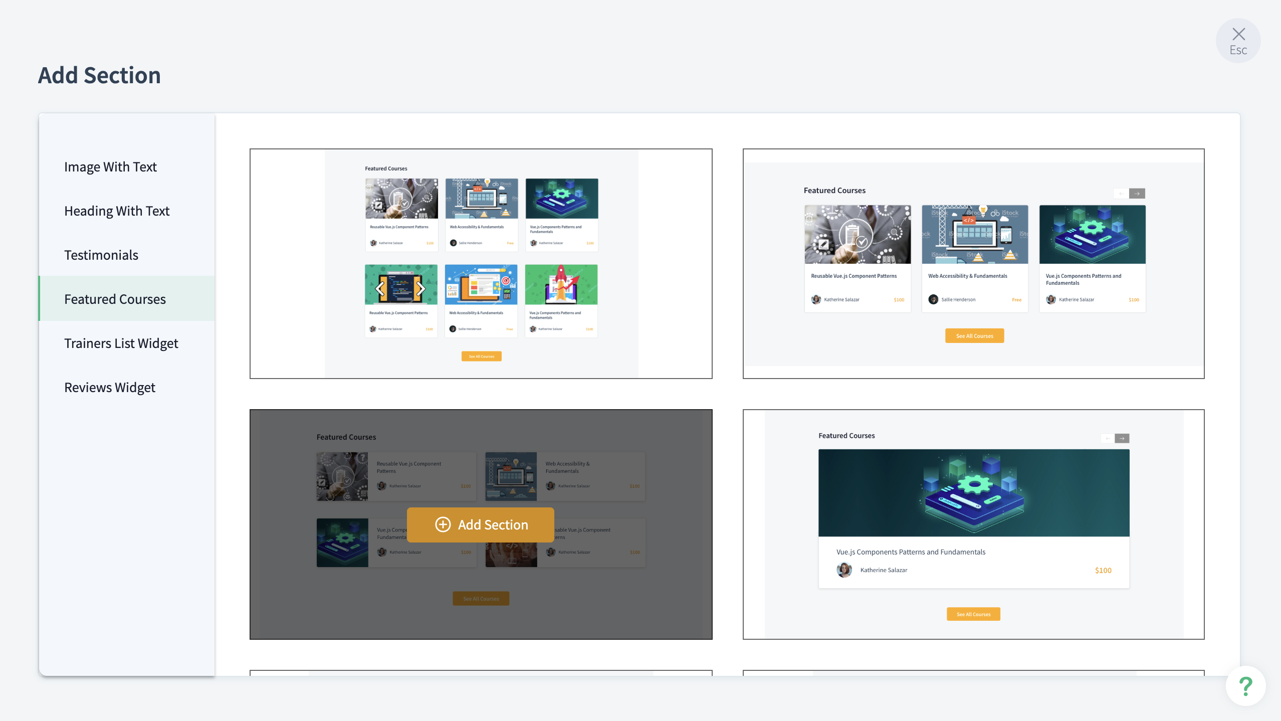 You can add the featured courses listed in your academy to your course website using this section.