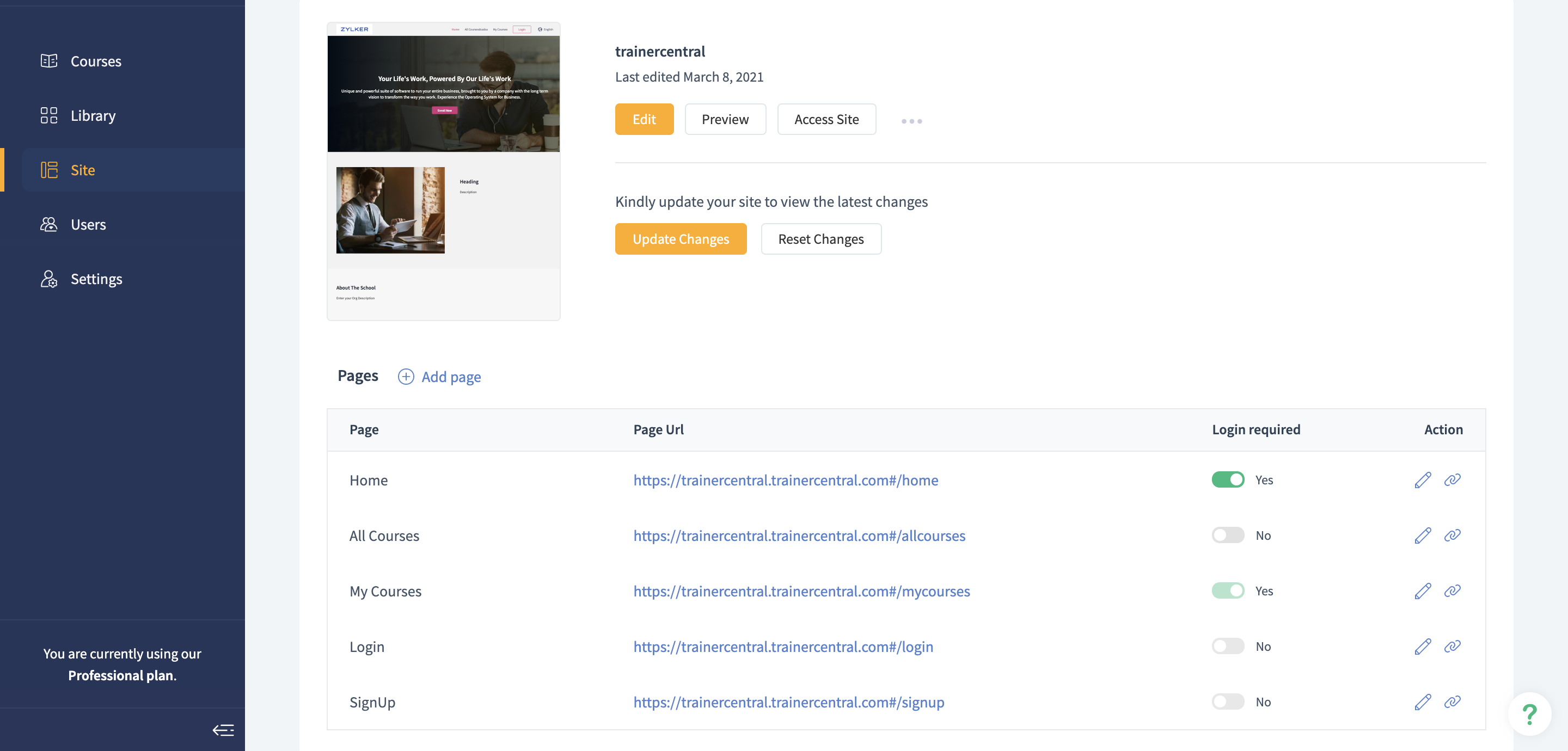 TrainerCentral gives the option to customize your course page by adding sections, altering navigation, incorporating branding elements and much more. To edit the course page 1. Click on the course and navigate to the Pages tab. 2. Click on Edit ...