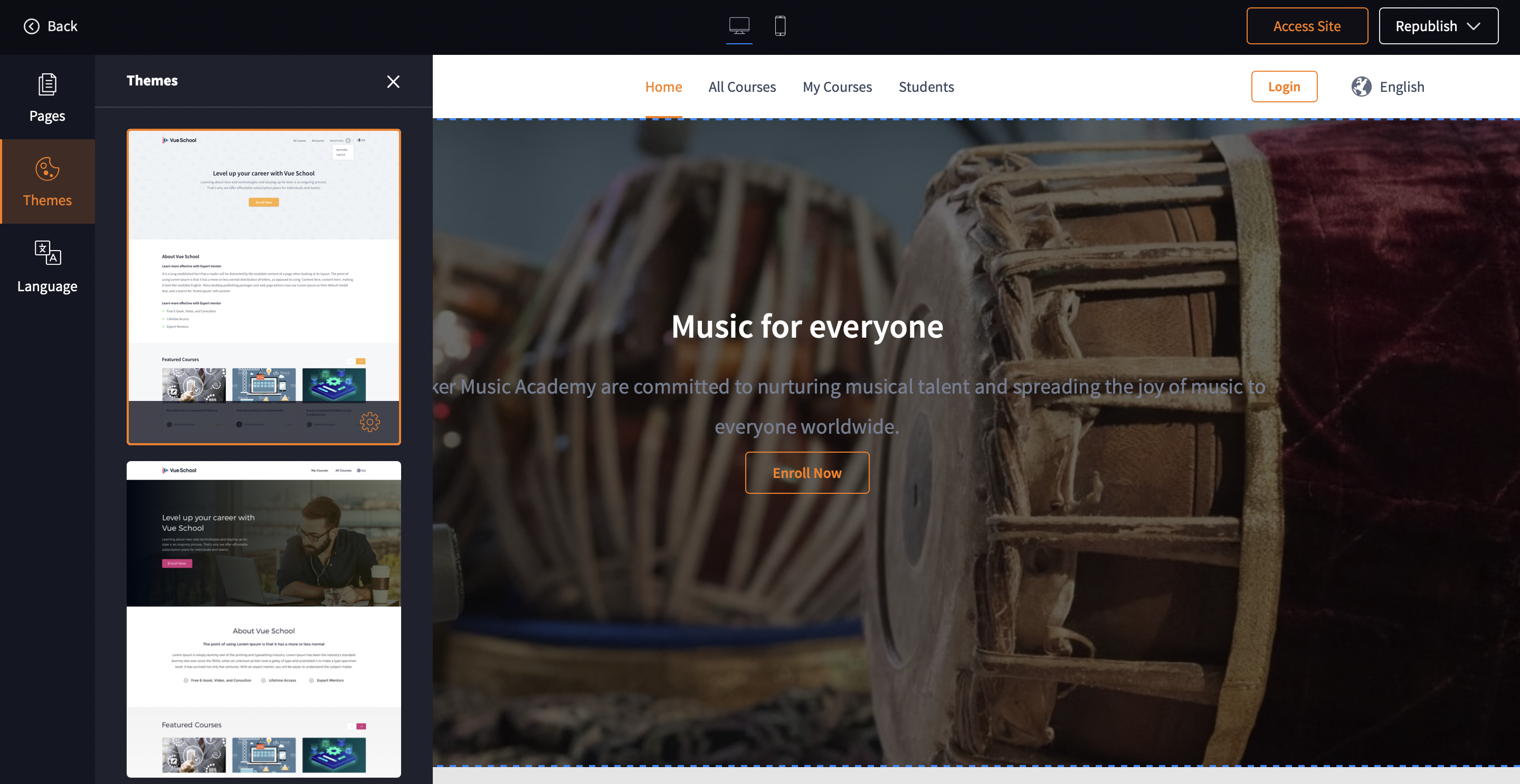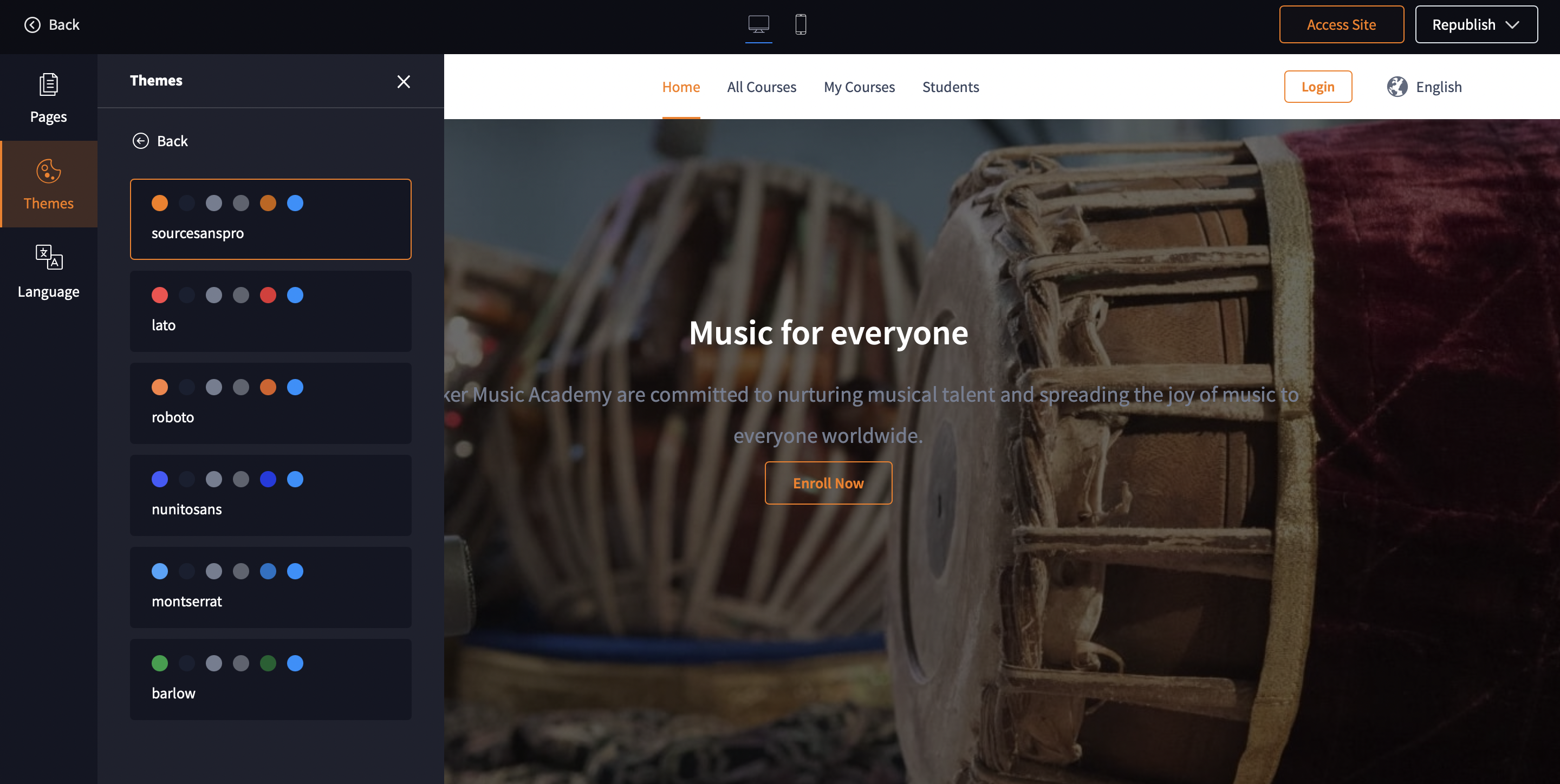 Your Academy has a designated All Courses page which lists all the courses listed in your academy. You can change the background of this page and also configure the navigation tab of this page. This help article is for old site editor and only ...