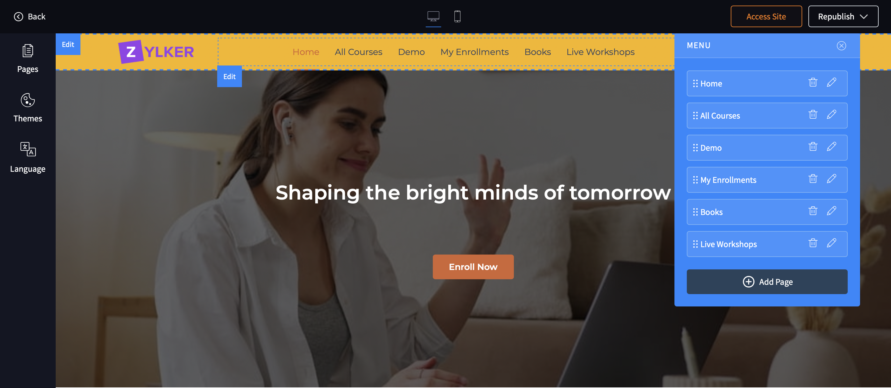 3. TrainerCentral allows you add customizable sections to your page which you can edit, reorder and add them as per your preference.