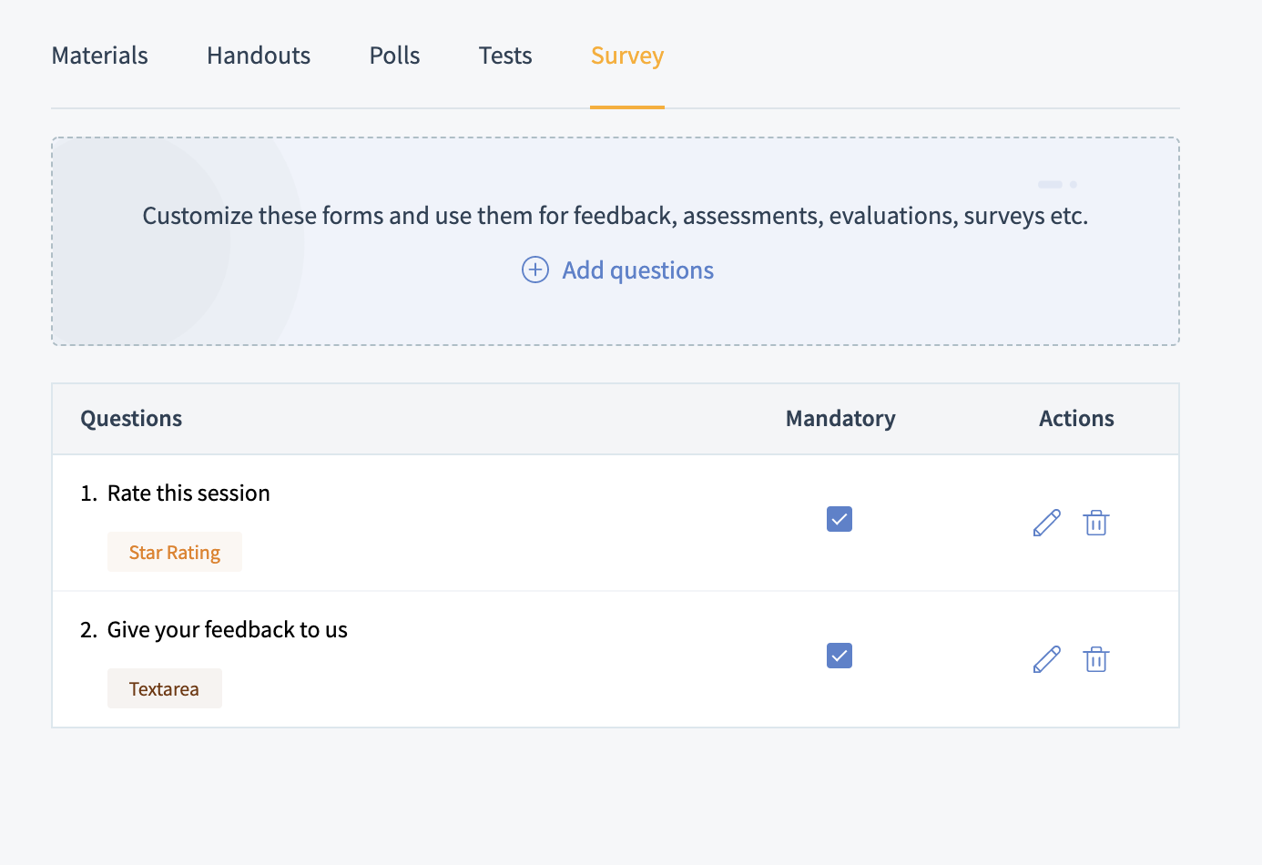 TrainerCentral allows you to customize these feedback and evaluation forms as per the trainer's need and will display them to your learners once the training is over.
