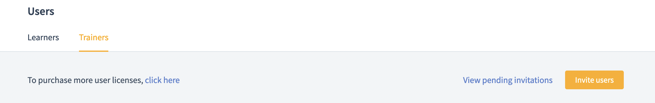 Navigate to the Users pane and click on Invite Trainers under the Trainers tab.