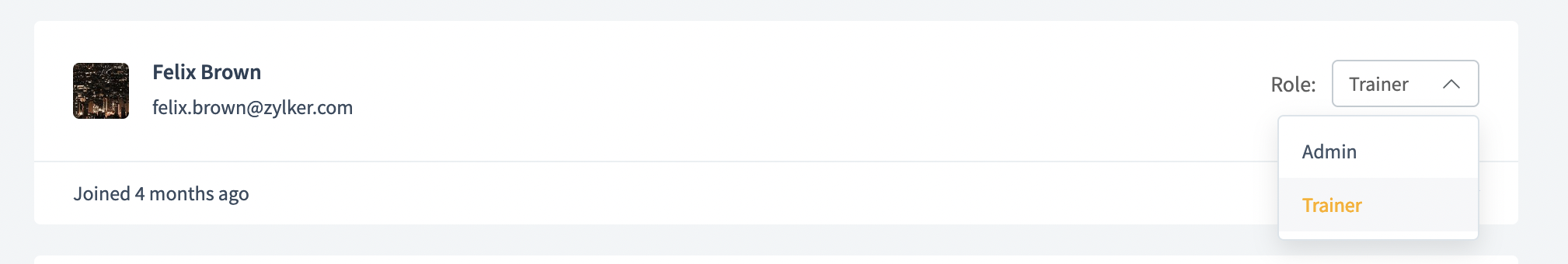 Navigate to the user pane and under the trainers tab, click on Remove user next to the trainer's name