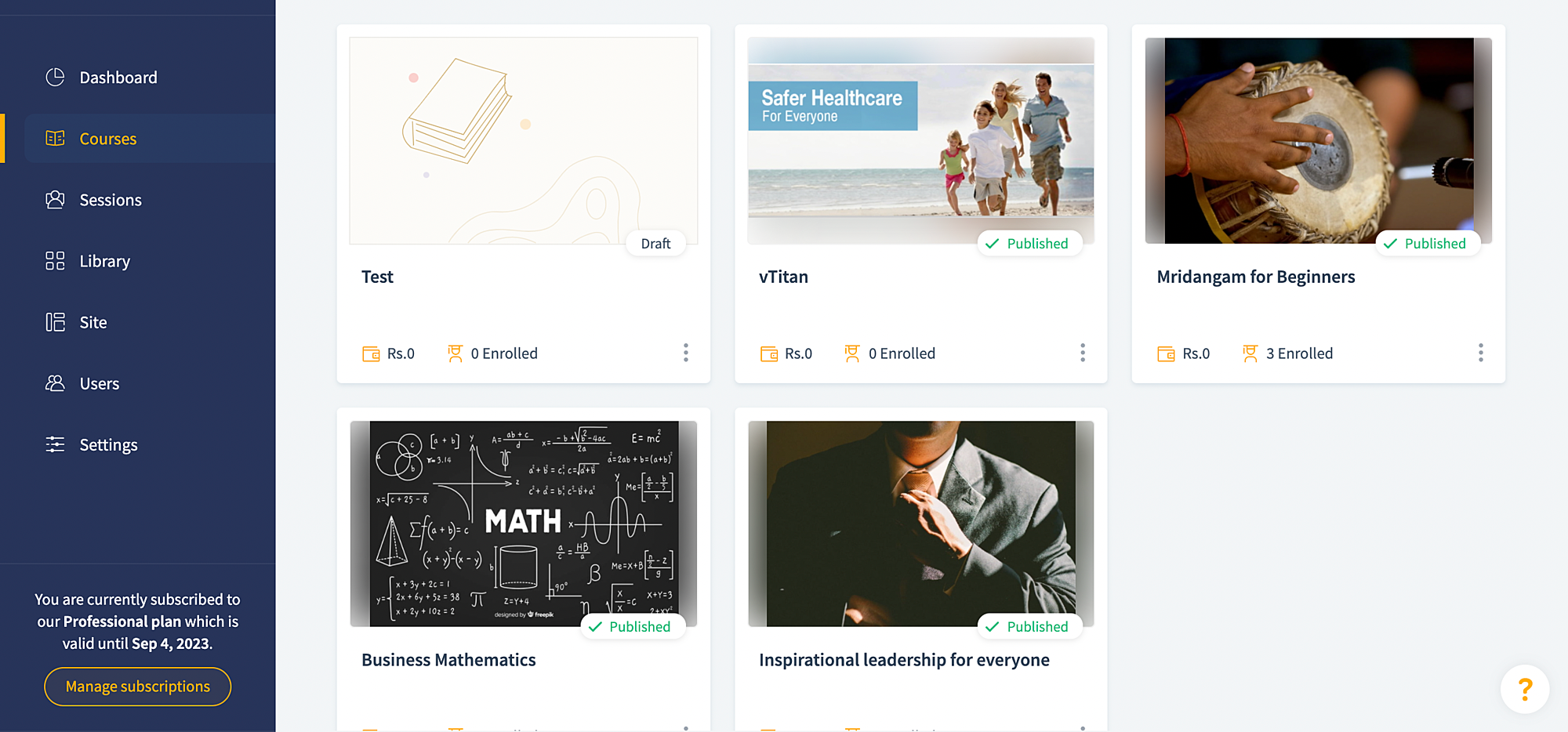 TrainerCentral allows you to host 3 courses in the free plan. As soon as you downgrade, all your published courses will be taken offline and you will be asked to choose the 3 courses that you wish to take online in your academy. These chosen 3 courses will be published and available for access for all your remote learners.