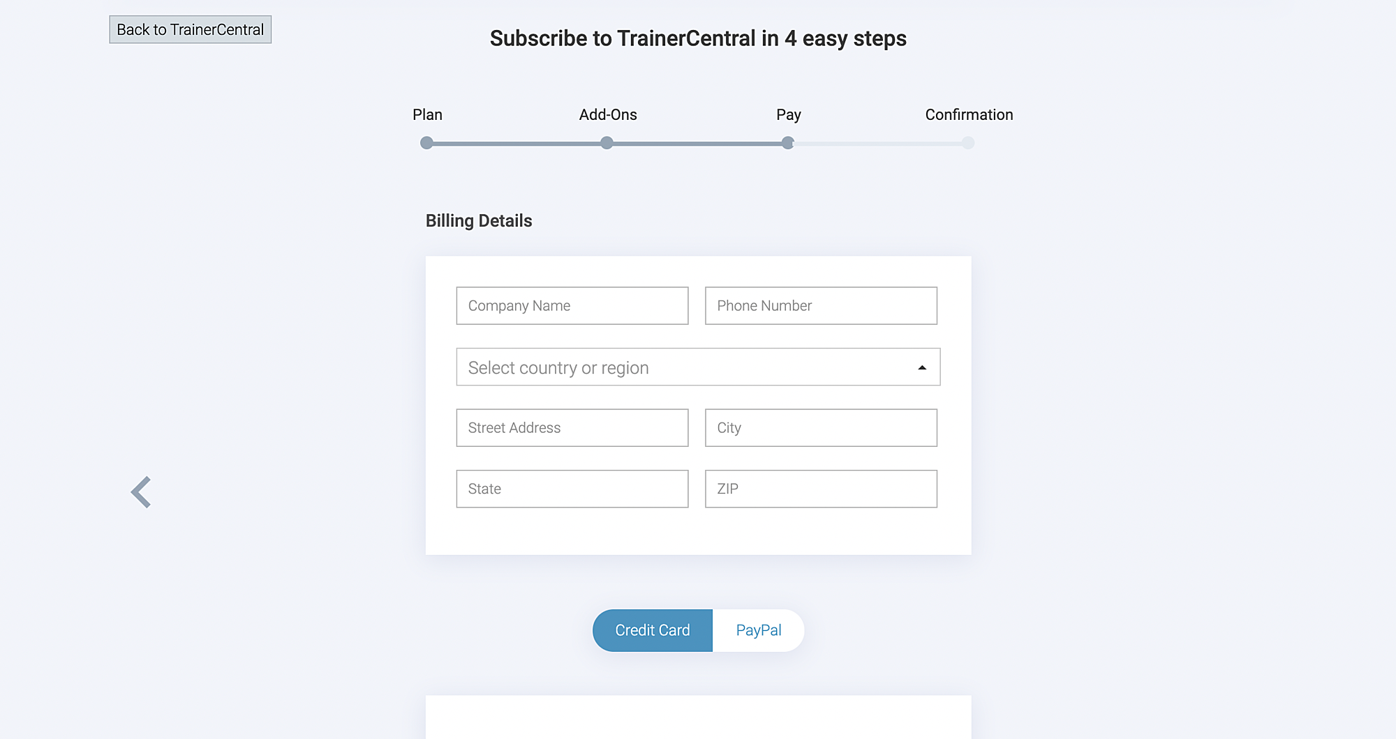 Upon successful payment, a pop-up will appear asking if you would like to visit the subscription page or the TrainerCentral page.