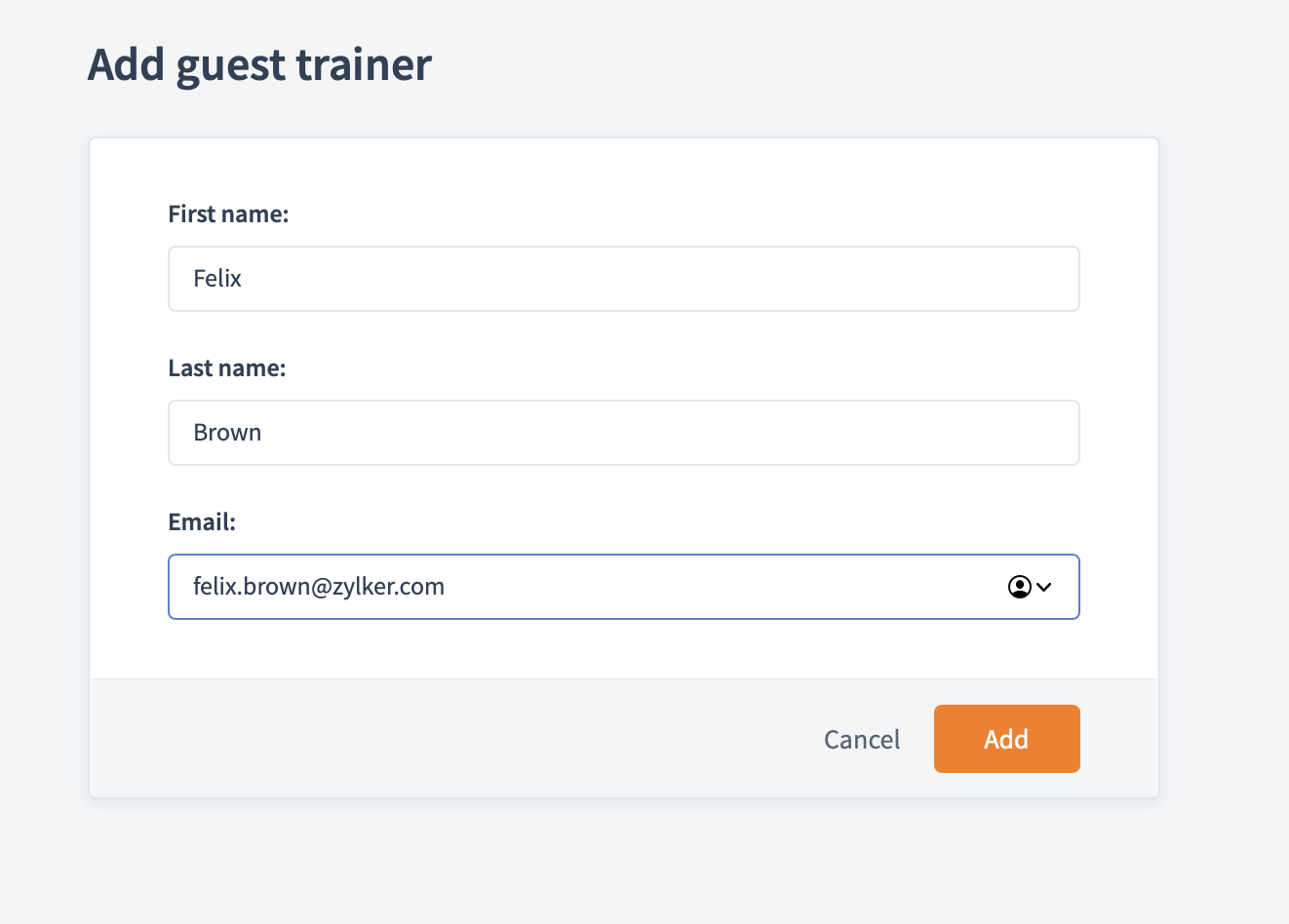2. Enter the name and email address of the person you want to invite as a guest trainer.