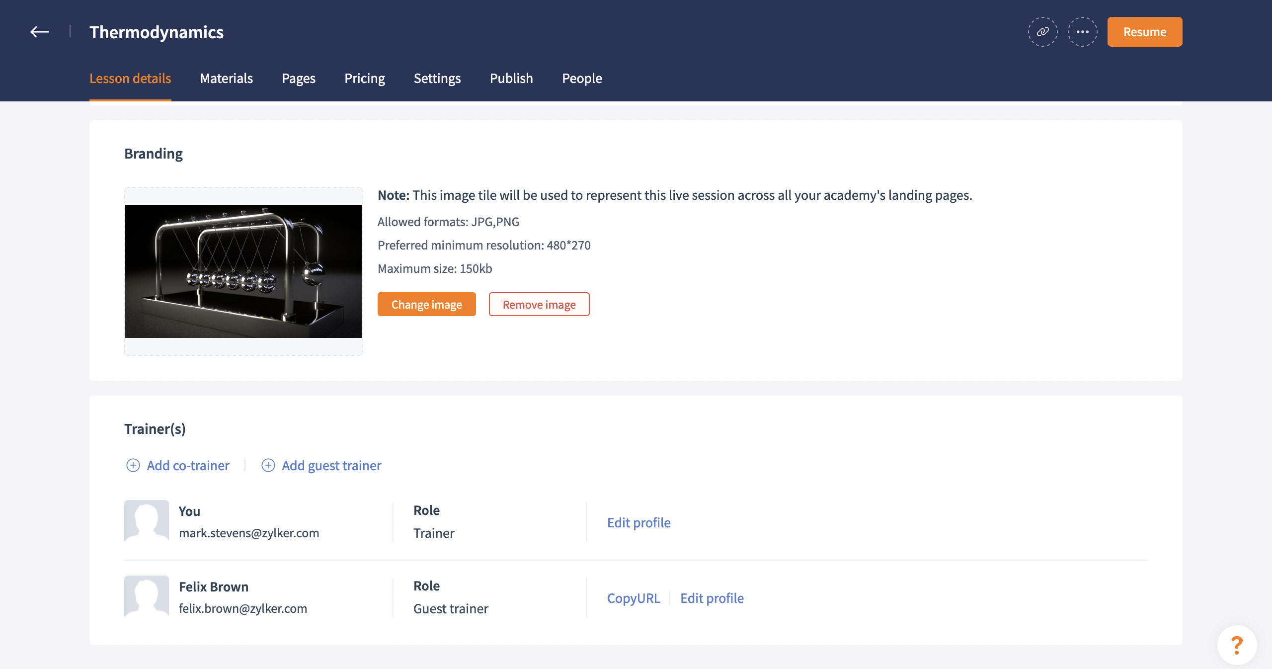 Potential attendees are more likely to sign up for your session when they know more about the trainer. Generate buzz about your guest trainer's achievements and credibility by showcasing their profile details on your session page.