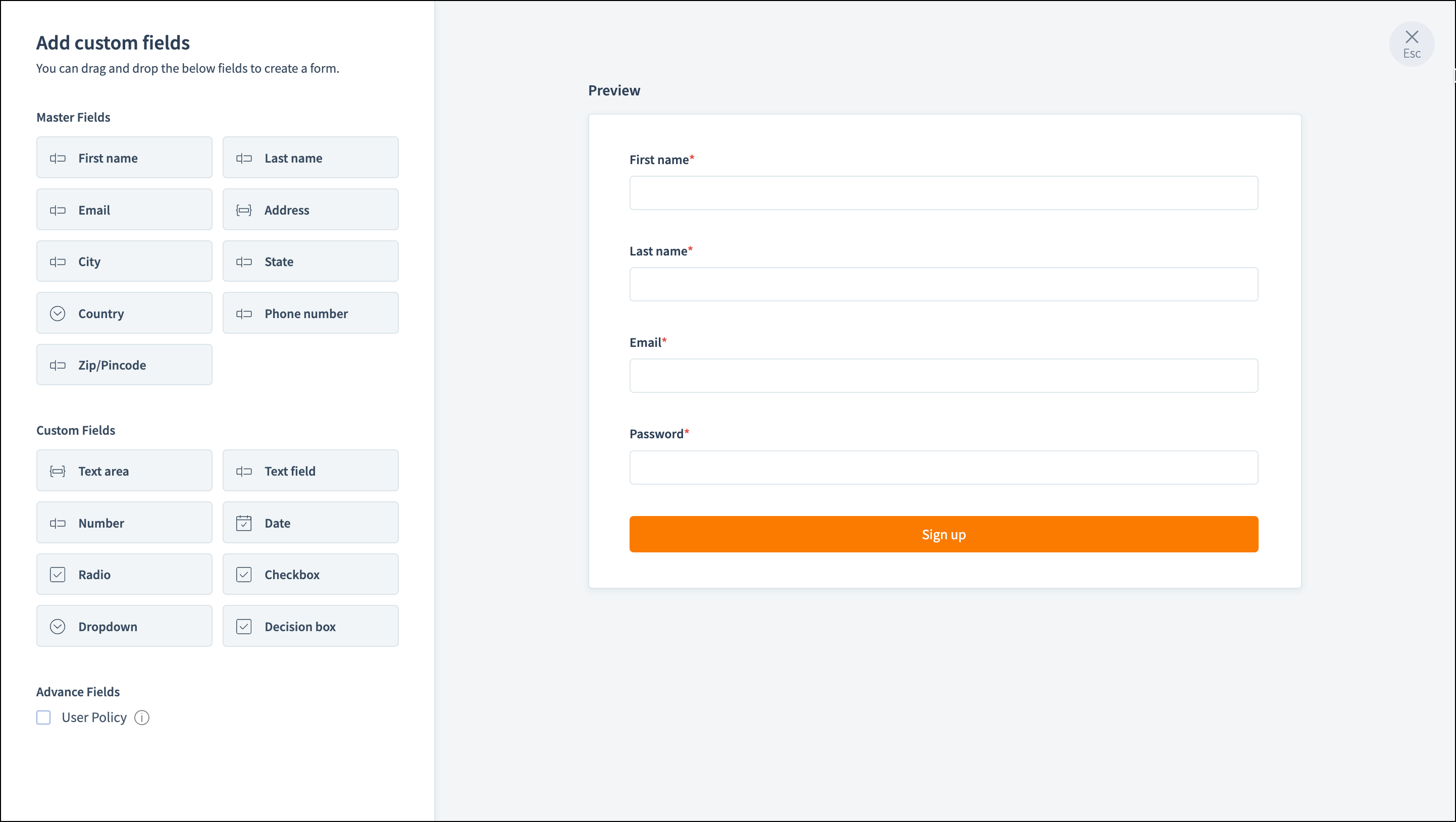 If you would like to customize your signup form, you can use master fields and custom fields.