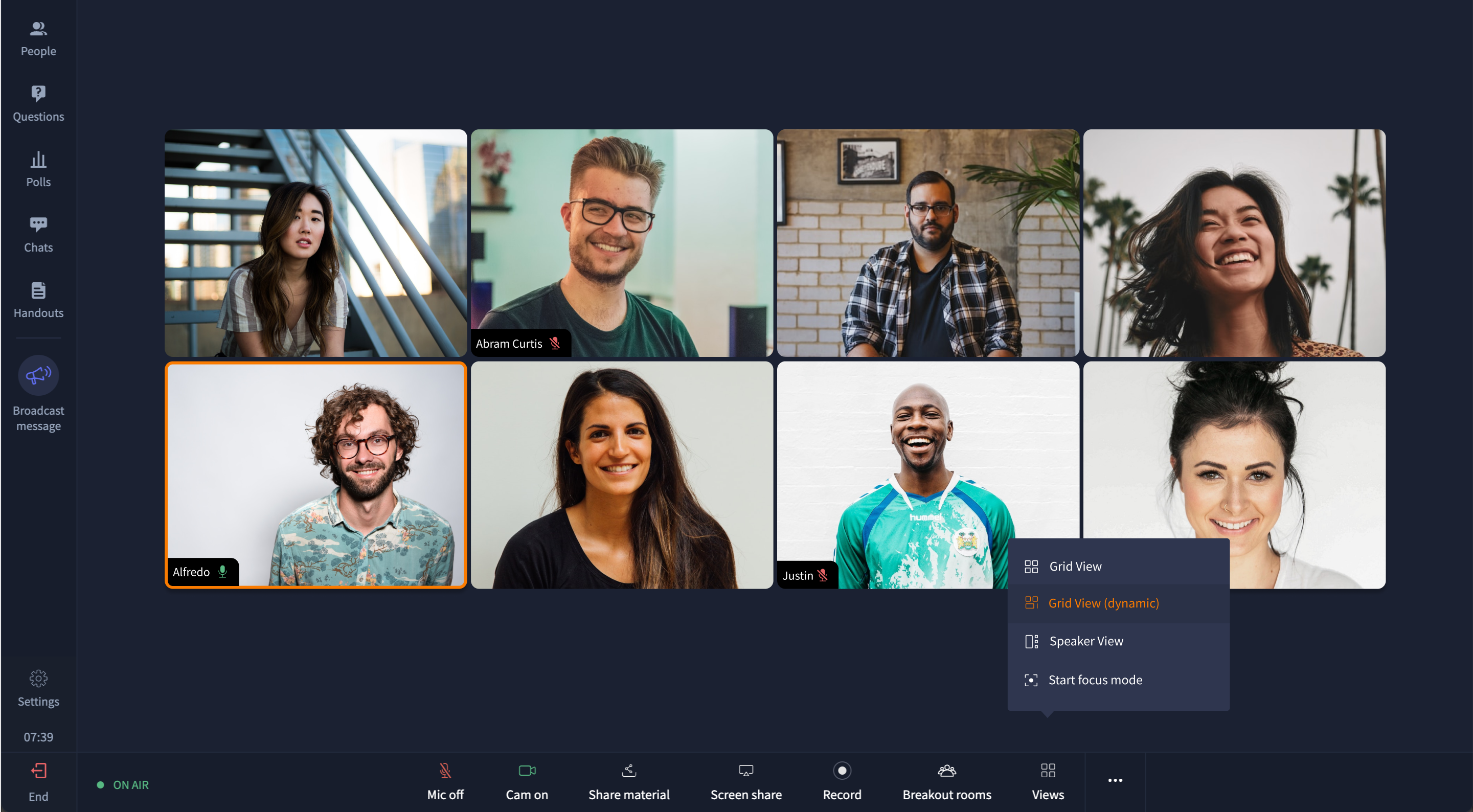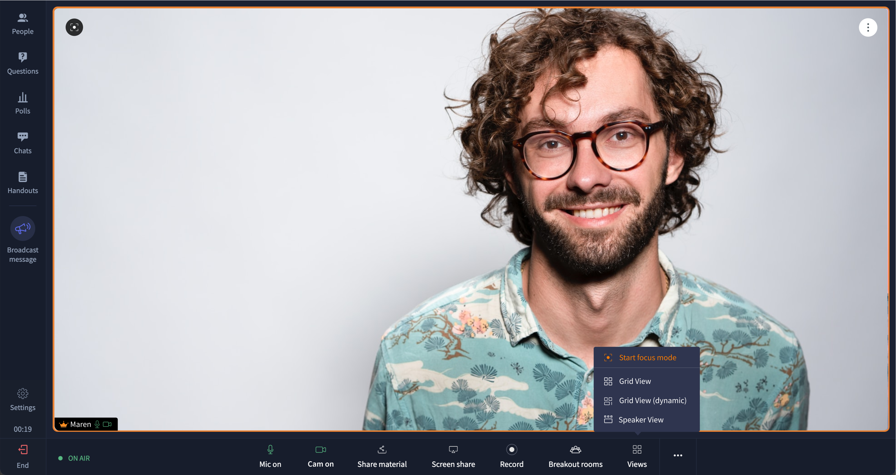 With Views, e very person in the session can choose the layout in which video streams of speakers are arranged.
