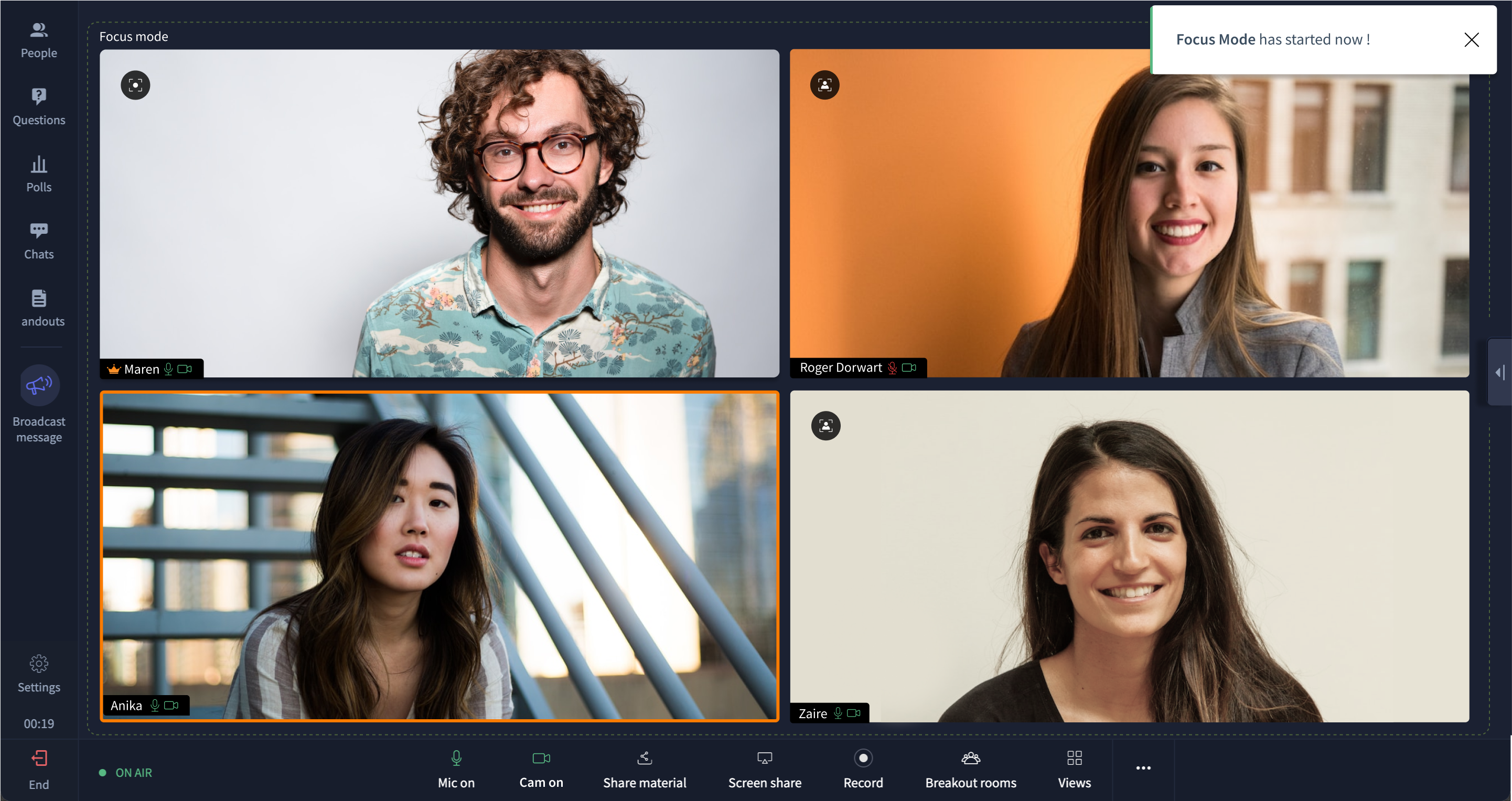 An extension to the Spotlight feature, focus mode hides the videos of everyone except the trainers and spotlighted individuals.