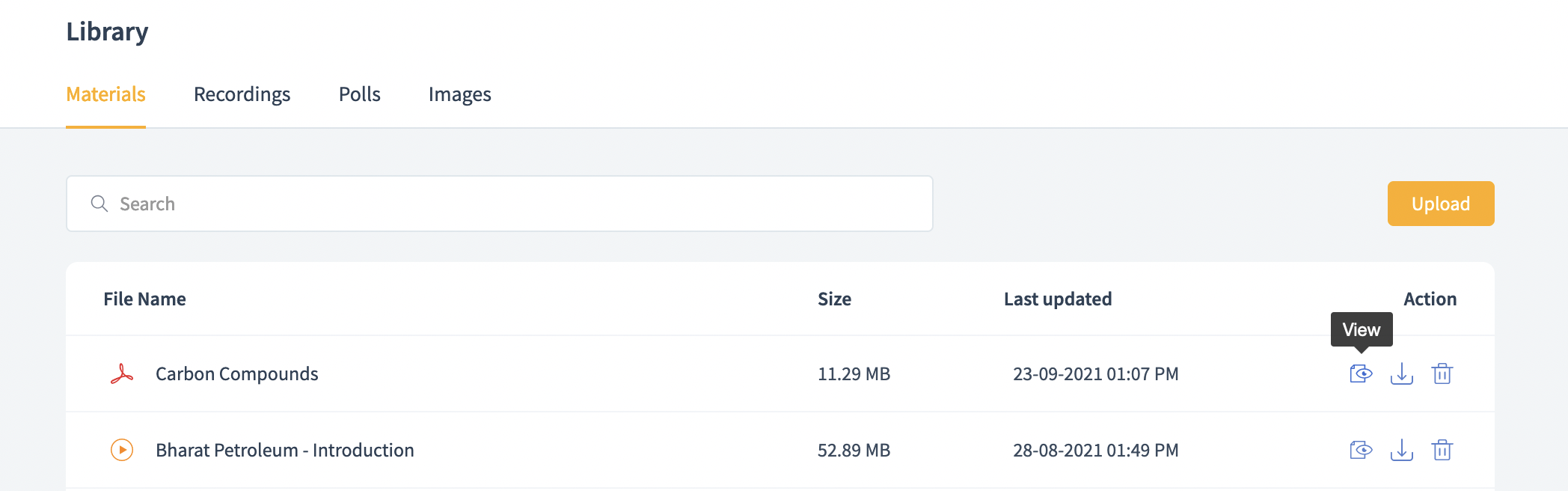 Navigate to the Library menu from the left pane and click on View button available right next to the name of the material listed under the Materials tab.