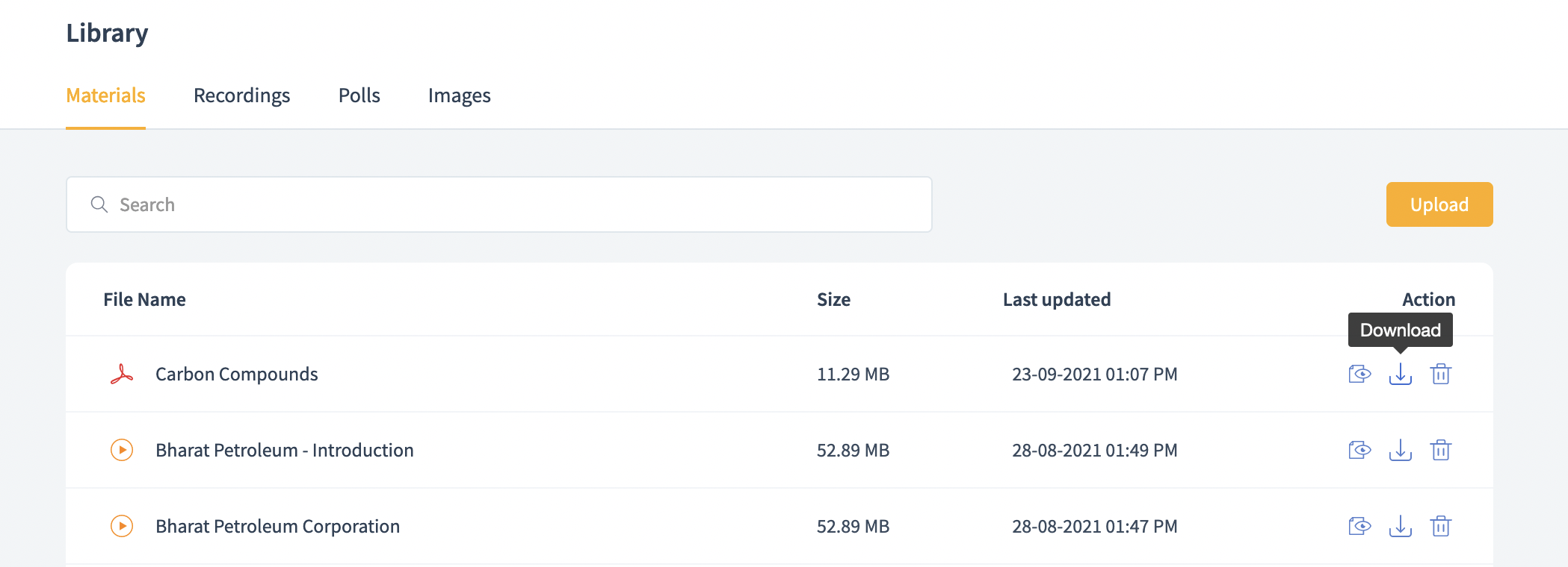 Yes, you can download any material hosted in your TrianerCentral library directly to your computer by clicking on the Download button available right next to the name of the material listed under the Materials tab.