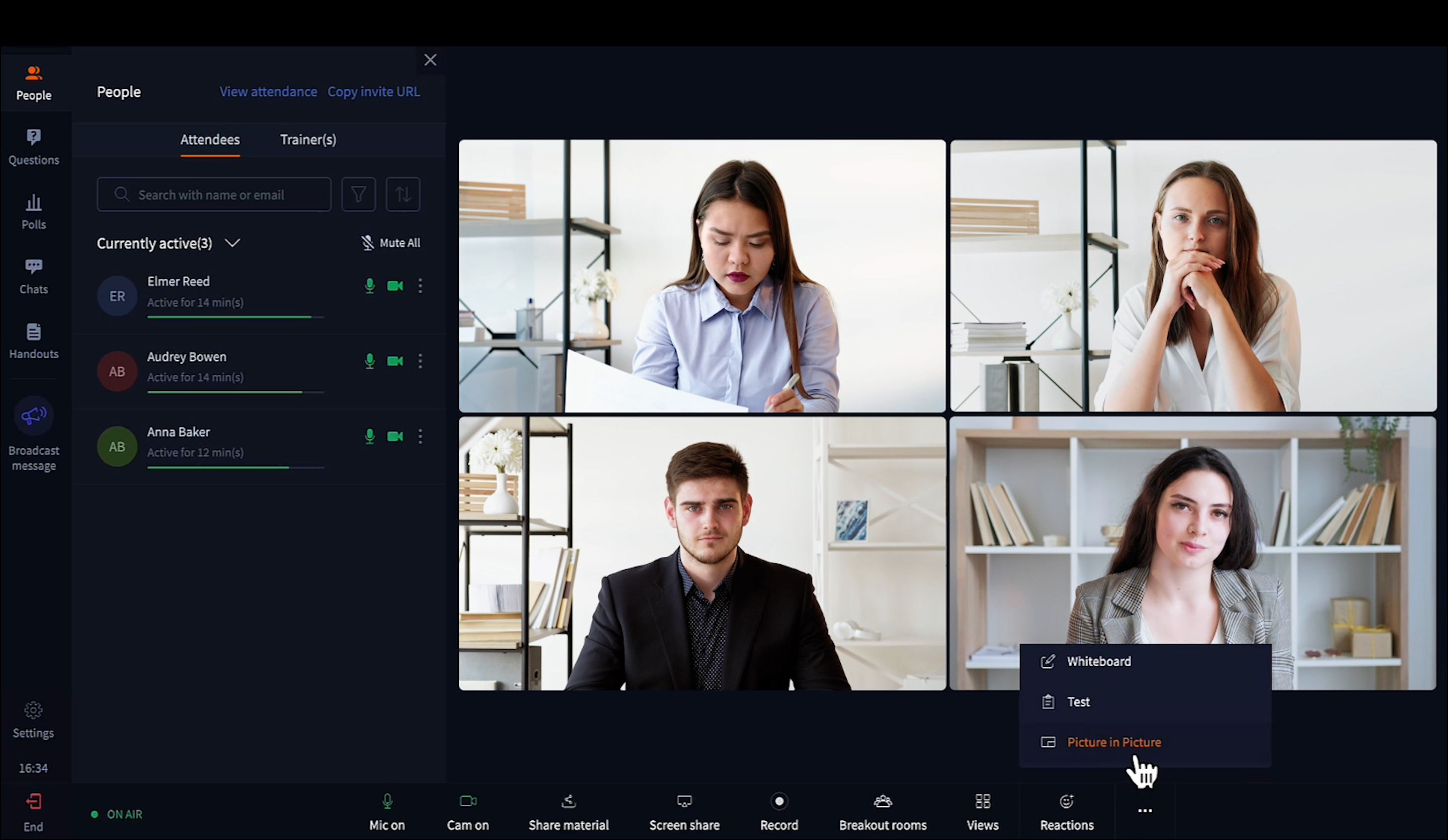 TrainerCentral's picture-in-picture feature allows you to efficiently manage your live session while toggling between tabs and other applications. When enabled, a minimized floating video will display on the screen while you're screen sharing or navigating through other applications.