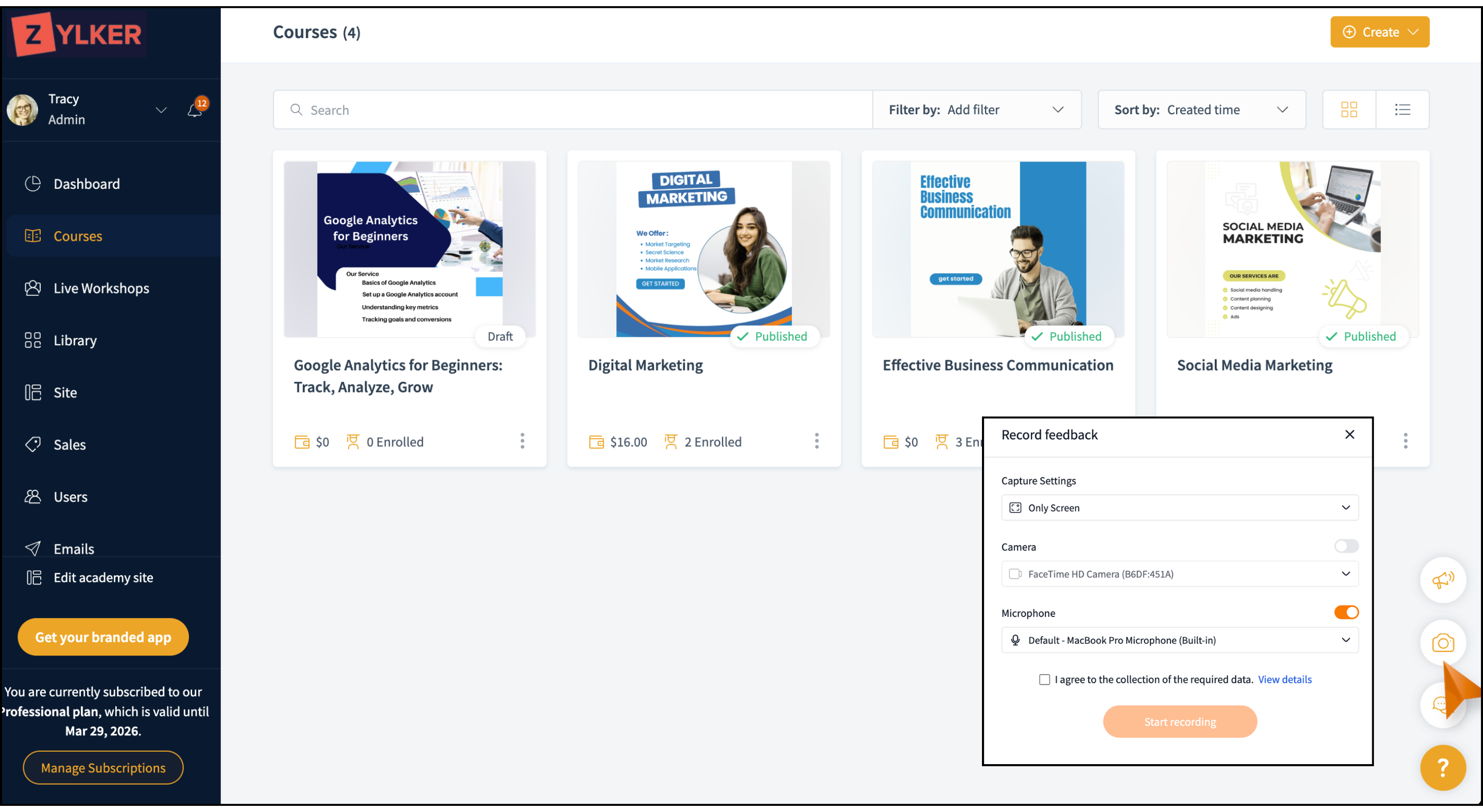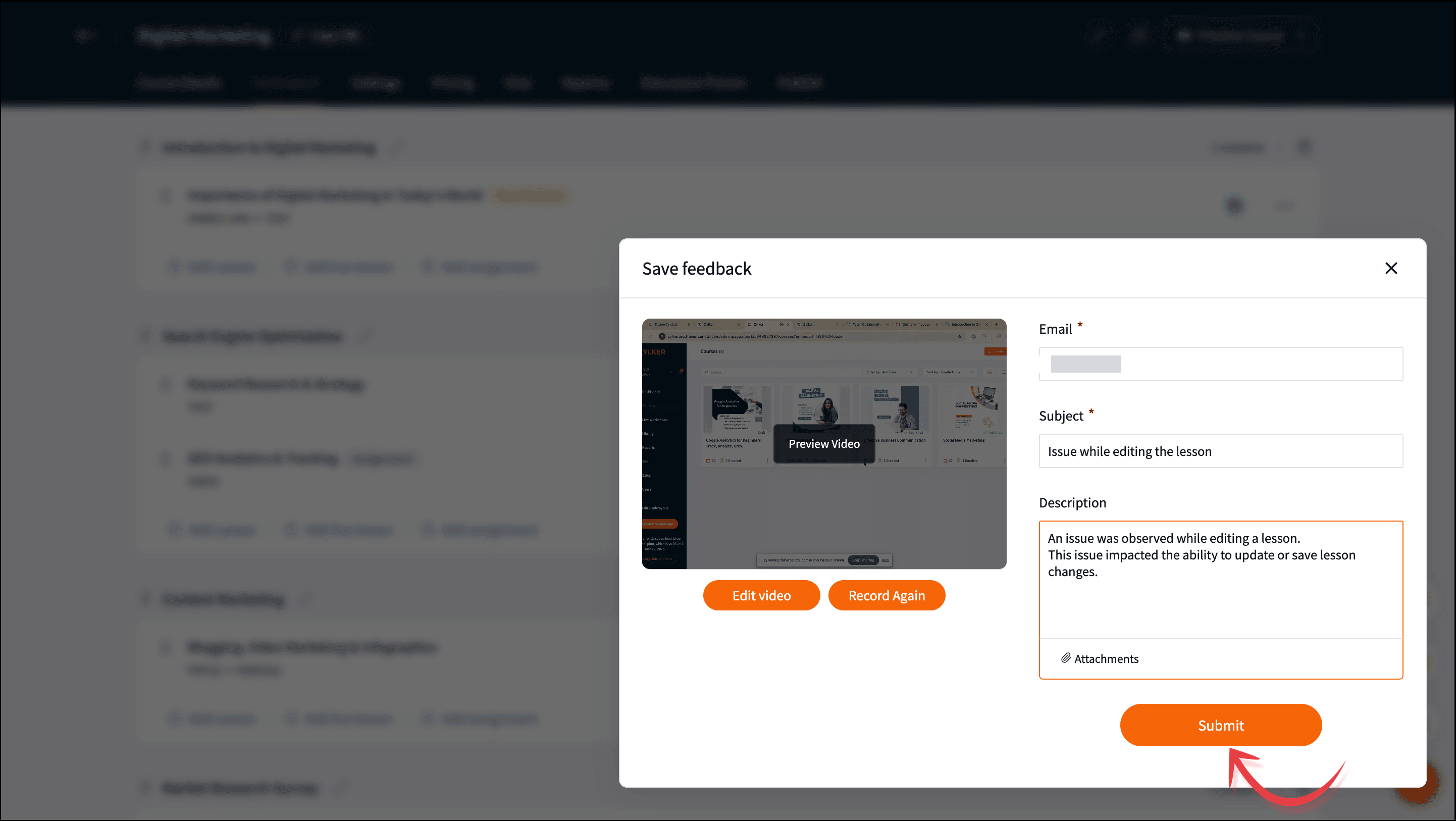 TrainerCentral enables you to report issues and provide visual feedback through contextual recordings. These issues and recordings are handled by TrainerCentral support team to enable faster and quicker solutions.