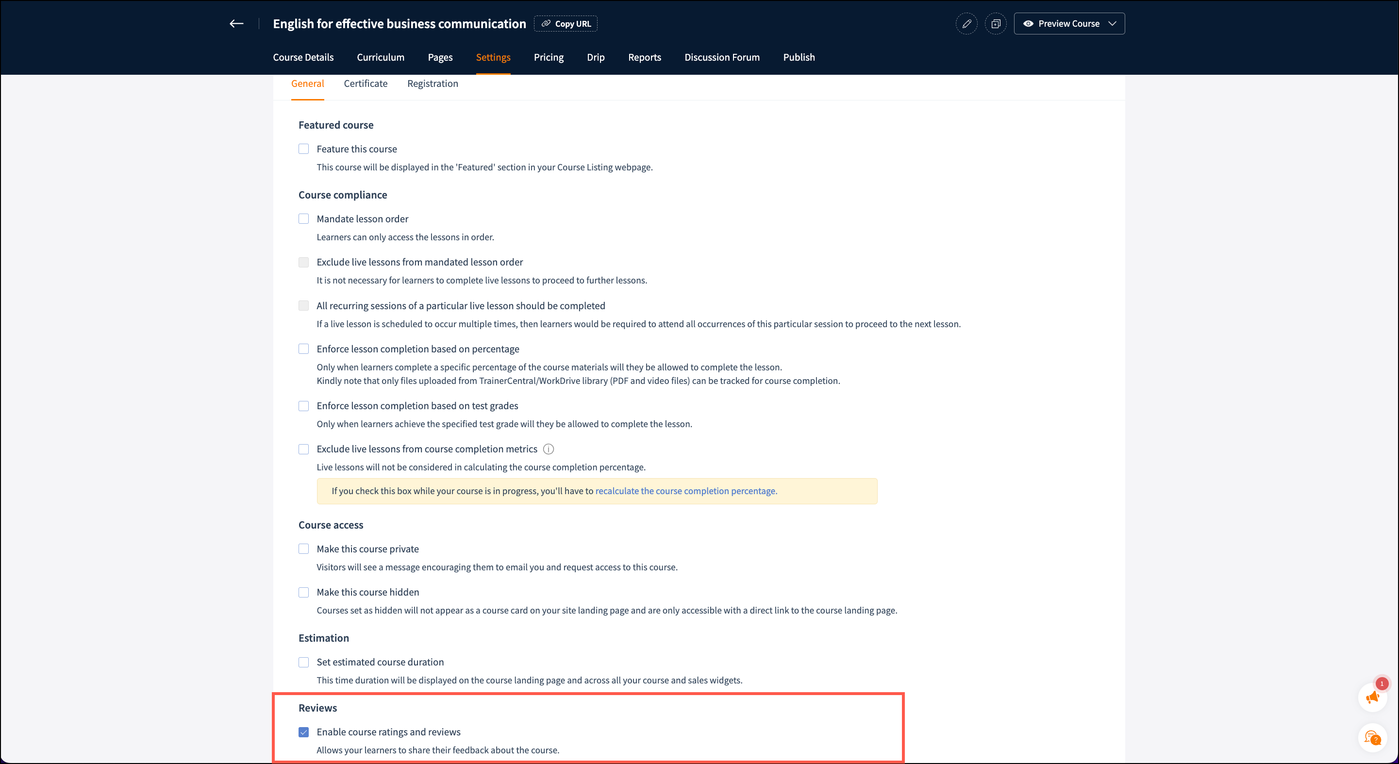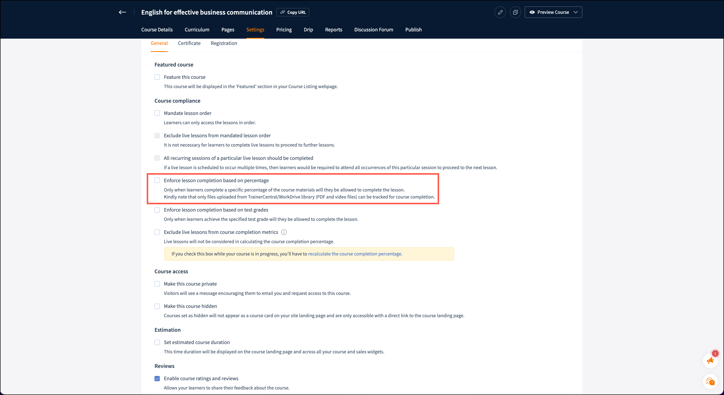 When enabled, it is not mandatory for learners to attend live lessons to proceed to further lessons. Irrespective of whether they attend a live lesson or not, they will be allowed to access the next following lesson in the course curriculum without any restrictions.