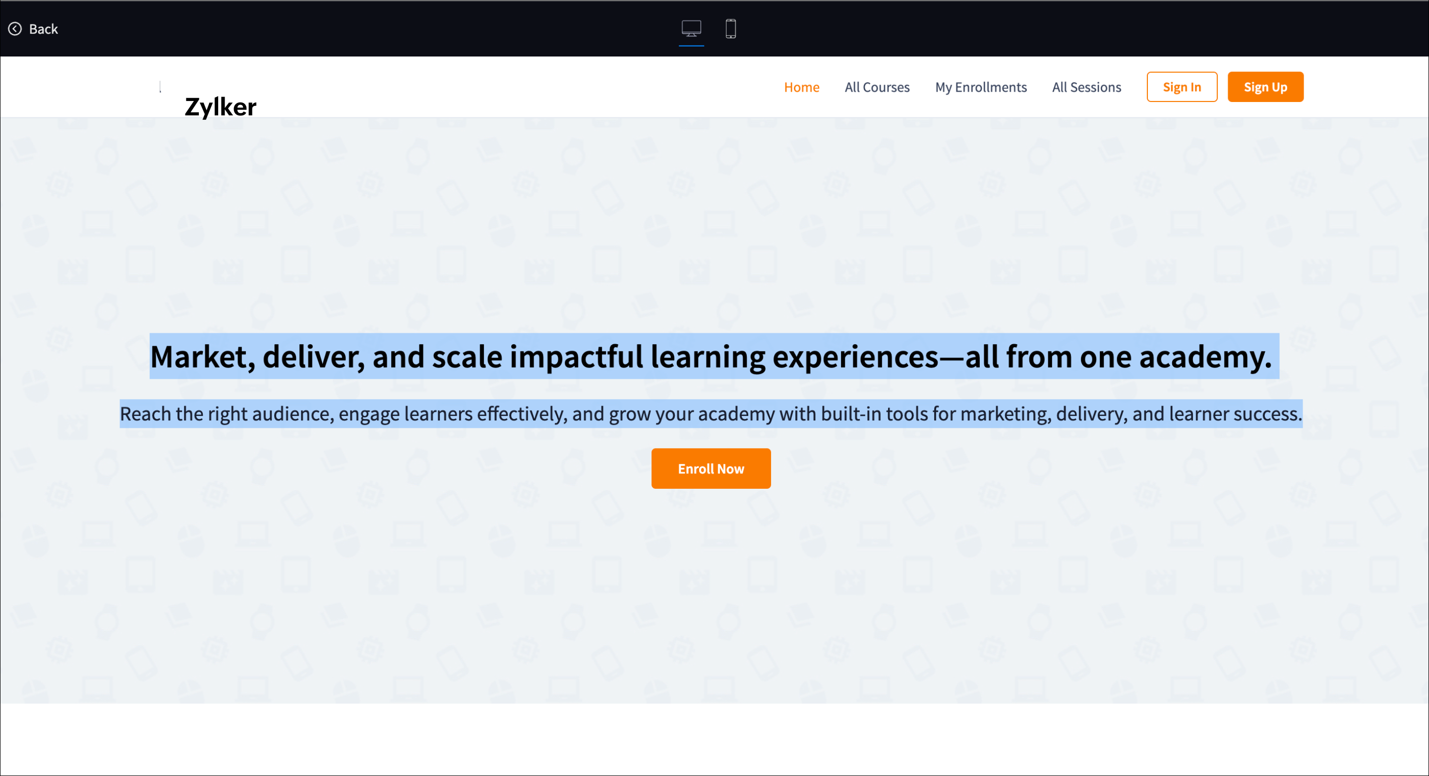 With your academy website, learners can explore what your academy offers. Dedicated course and session pages further help them understand the value of each offering. Publish these pages to inspire learners and kickstart their learning journey.