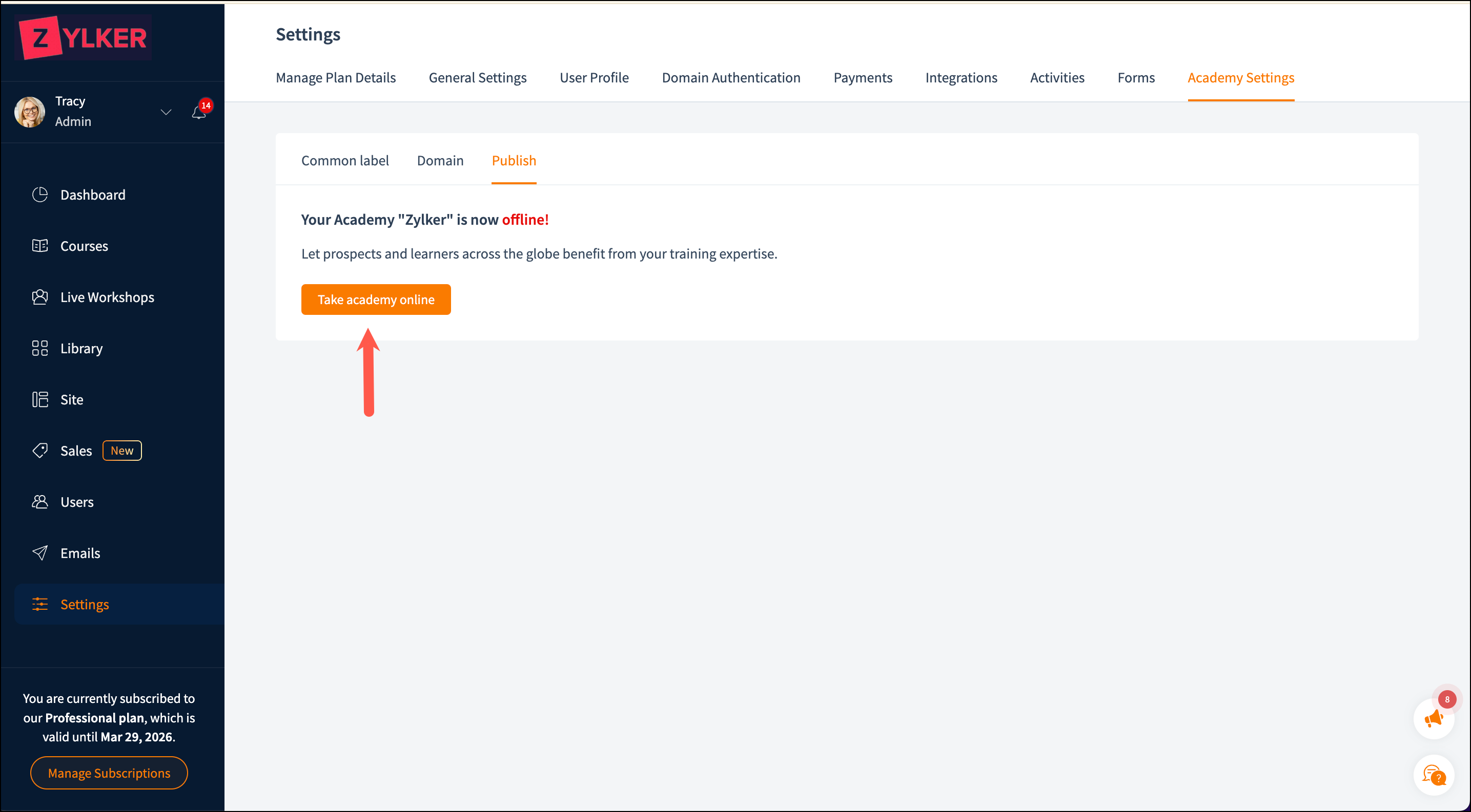 Once you configure your academy, create courses, build your site, you are now ready to take your school live and reach prospects with your training expertise all across the globe. Here are the below steps to take your academy live.