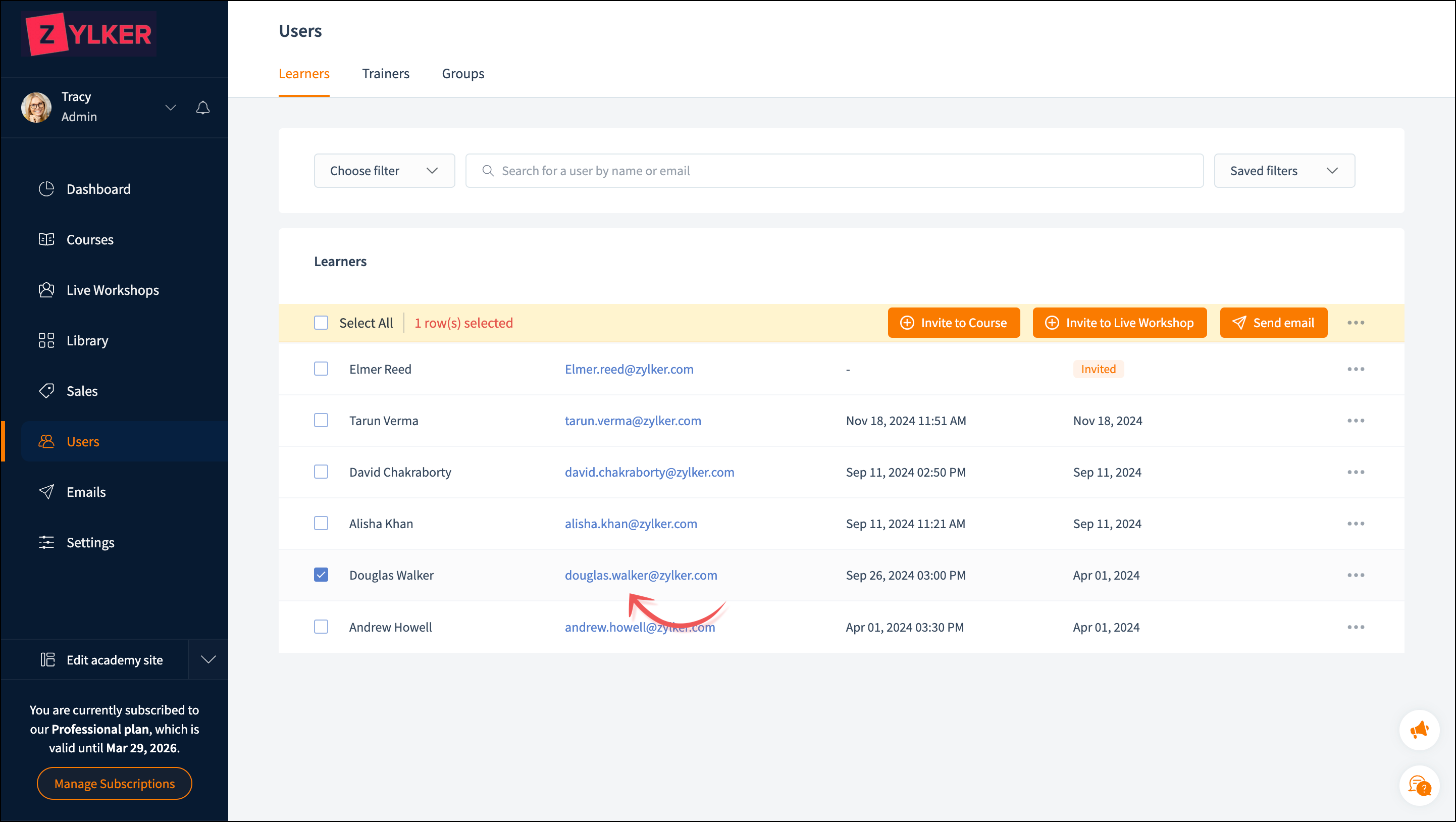 Resend Invitation: You can resend the invitation to learners who have not yet enrolled.