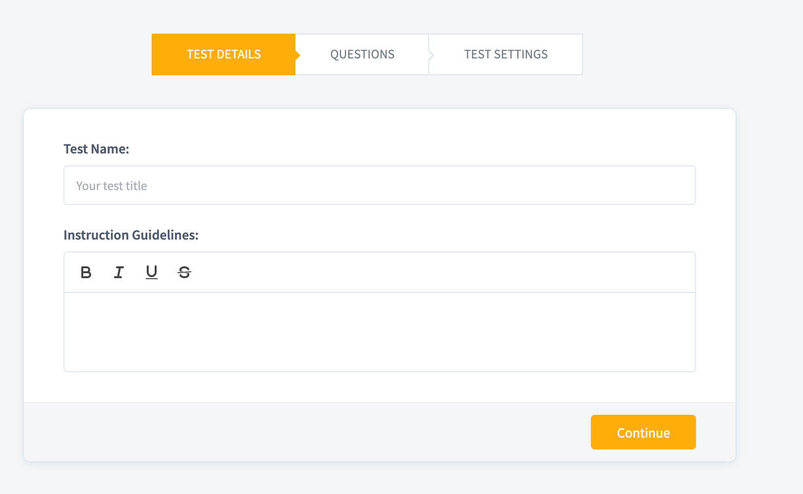 Click on Add Test and add the name and the preferred guidelines (if any for your students to keep in mind when taking the test).
