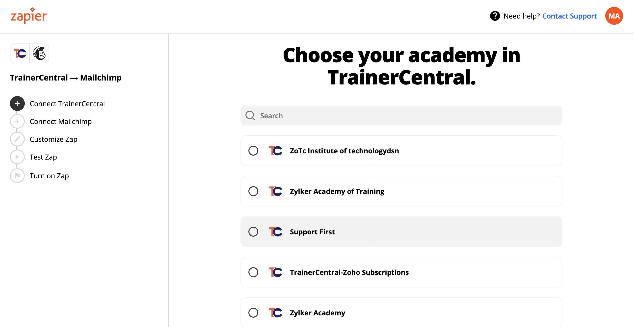 If you have multiple academies in your TrainerCentral account, you can choose any one.